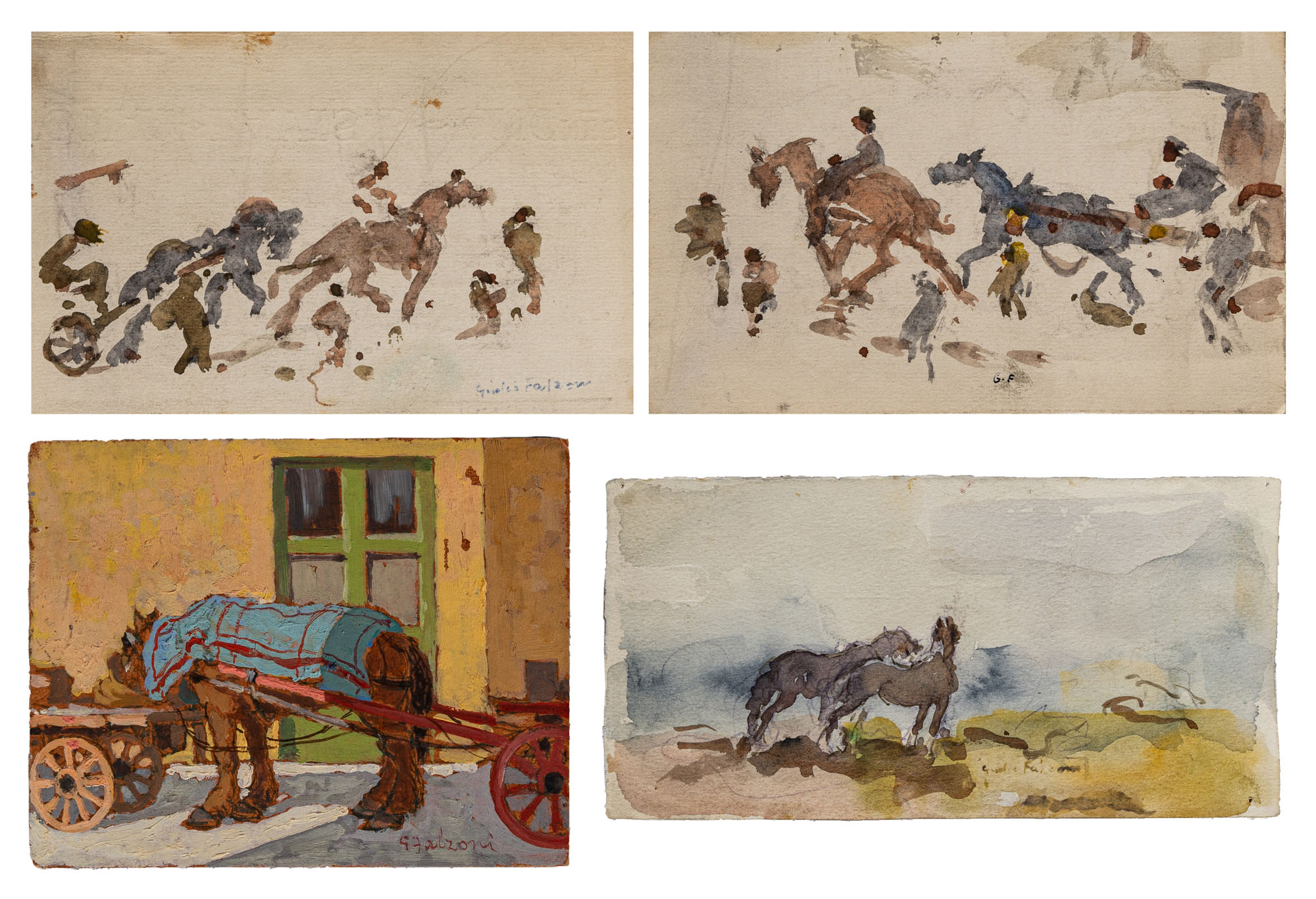 GIULIO FALZONI(1900 - 1978)Lotto multiploLotto composto da quattro disegniSenza titoloAcquerello su cartone, recto-verso9,8 x 12,5 cmFirmato in basso a destraSenza titoloAcquerello su carta10 x 20 cmFirmato in basso al centroSenza titoloAcquerello su carta9 x 15 cmSiglato in basso al centroSenza titoloAcquerello su carta9,5 x 15 cmFirmato in basso a destraPROVENIENZA:Collezione privata, Milano