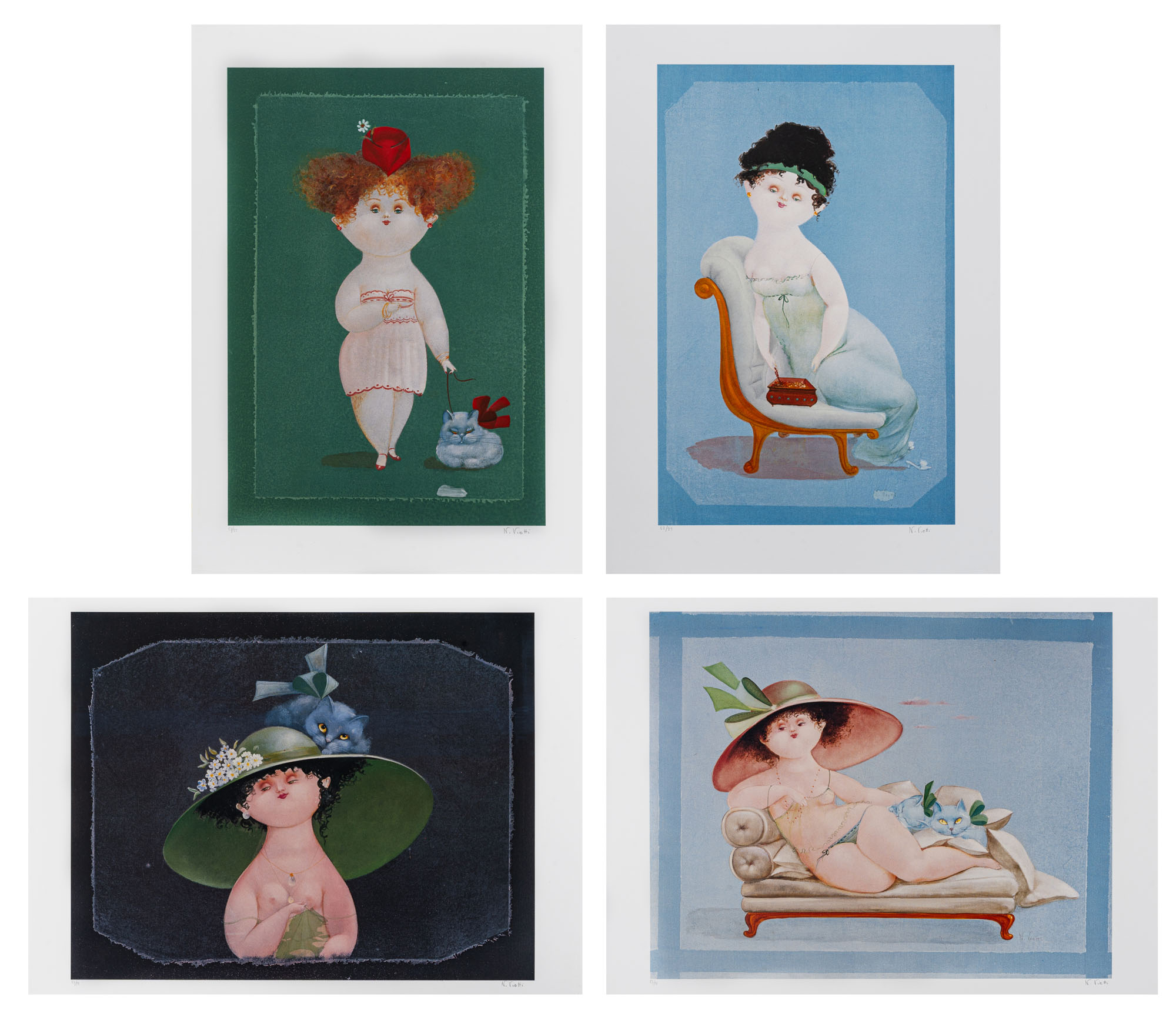 NICOLA VIETTI(1945)Le donne di Vietti1992Cartella contenente 4 litografie, es. 53/99, Edizione Dimensione d'Arte, CremonaOgni litografia misura 70 x 50 cmOgni litografia è firmata a matita in basso a destra e numerata in basso a sinistraPROVENIENZA:Collezione privata, Milano