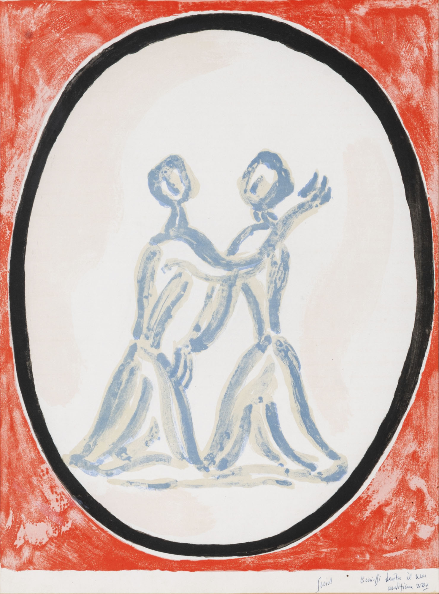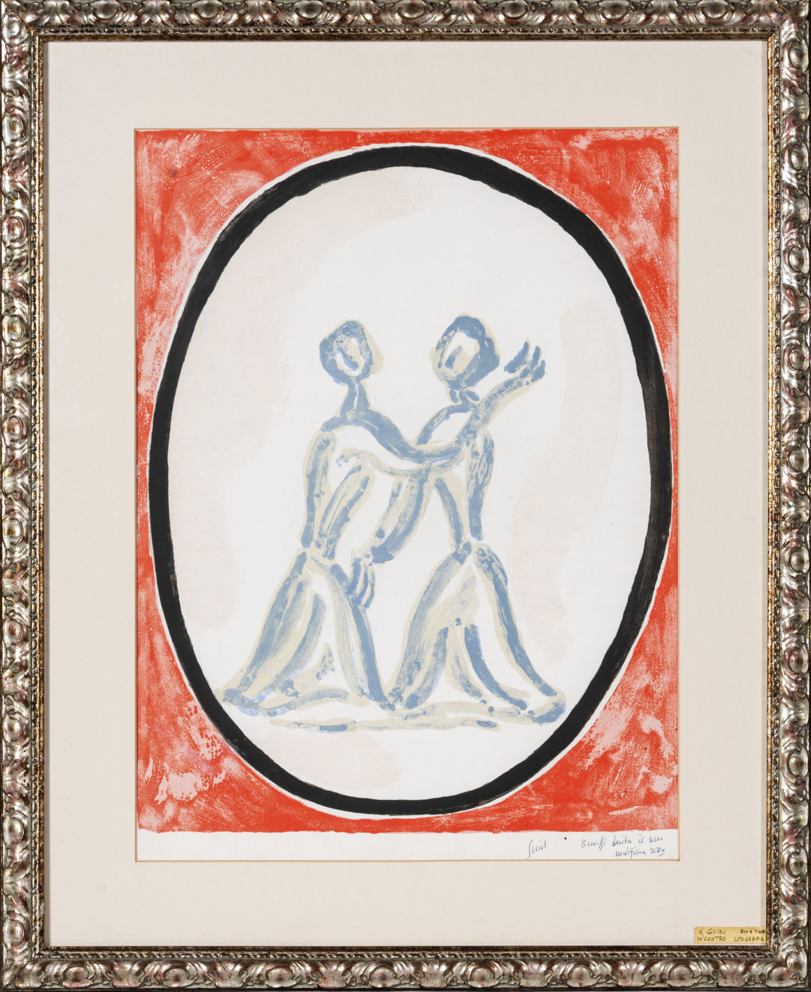 VIRGILIO GUIDI(1891 - 1984)IncontroLitografia, es. bon à tirer57,5 x 49,5 cmFirmato in basso a destraPROVENIENZA:Collezione privata, Padova