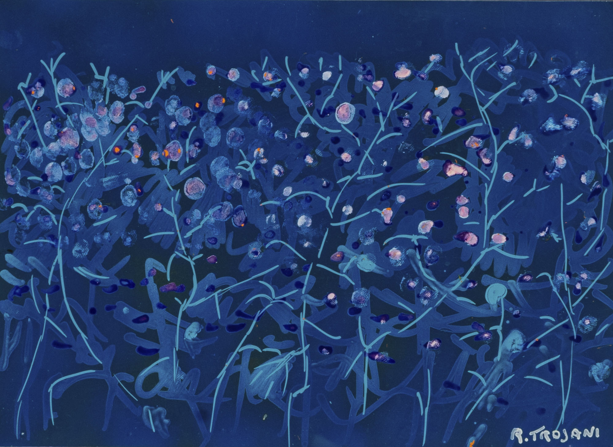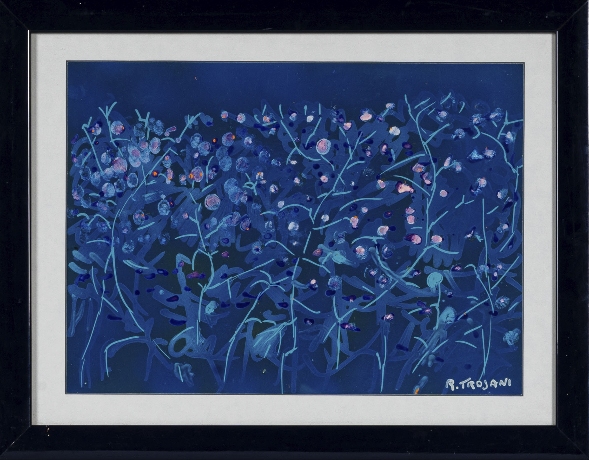 ROMANO TROJANI(1926)Senza titoloTecnica mista su cartoncino lucido21,5 x 29,5 cmFirmata in basso a destraDedica al retroPROVENIENZA:Collezione privata, Lecco