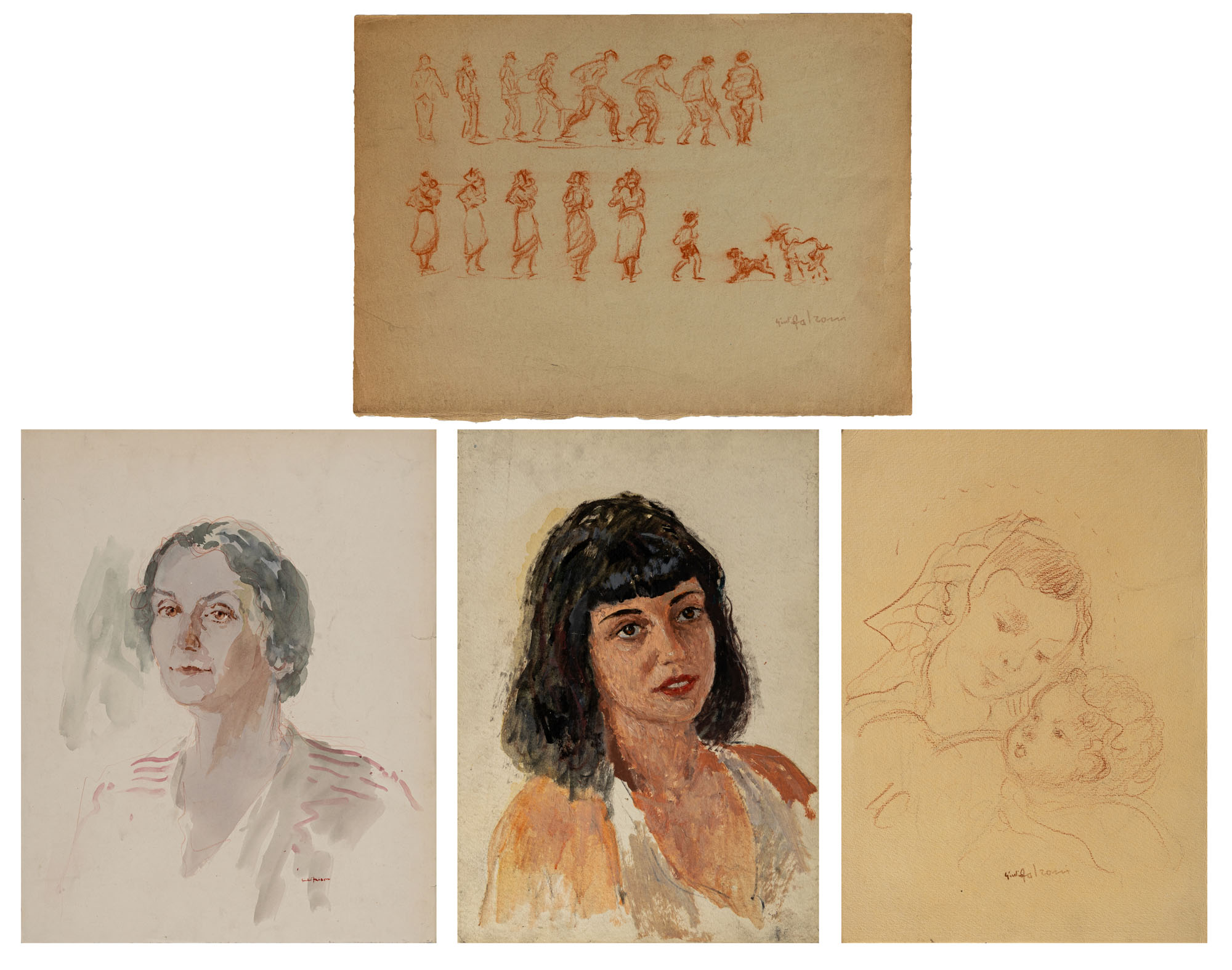 GIULIO FALZONI(1900 - 1978)Lotto multiploLotto composto da quattro opere:Senza titoloPastello su carta25 x 34,5 cmFirmato in basso a destraSenza titoloPastello su carta35 x 25 cmFirmato in basso al centroSenza titoloAcquarello su carta44,5 x 36,5 cmFirmato in basso a destraTimbro di autenticità al retroSenza titolo (Nipote)1948Tecnica mista su cartone50 x 35 cmSiglato in basso a destraTimbri di autenticità al retroPROVENIENZA:Collezione privata, Milano