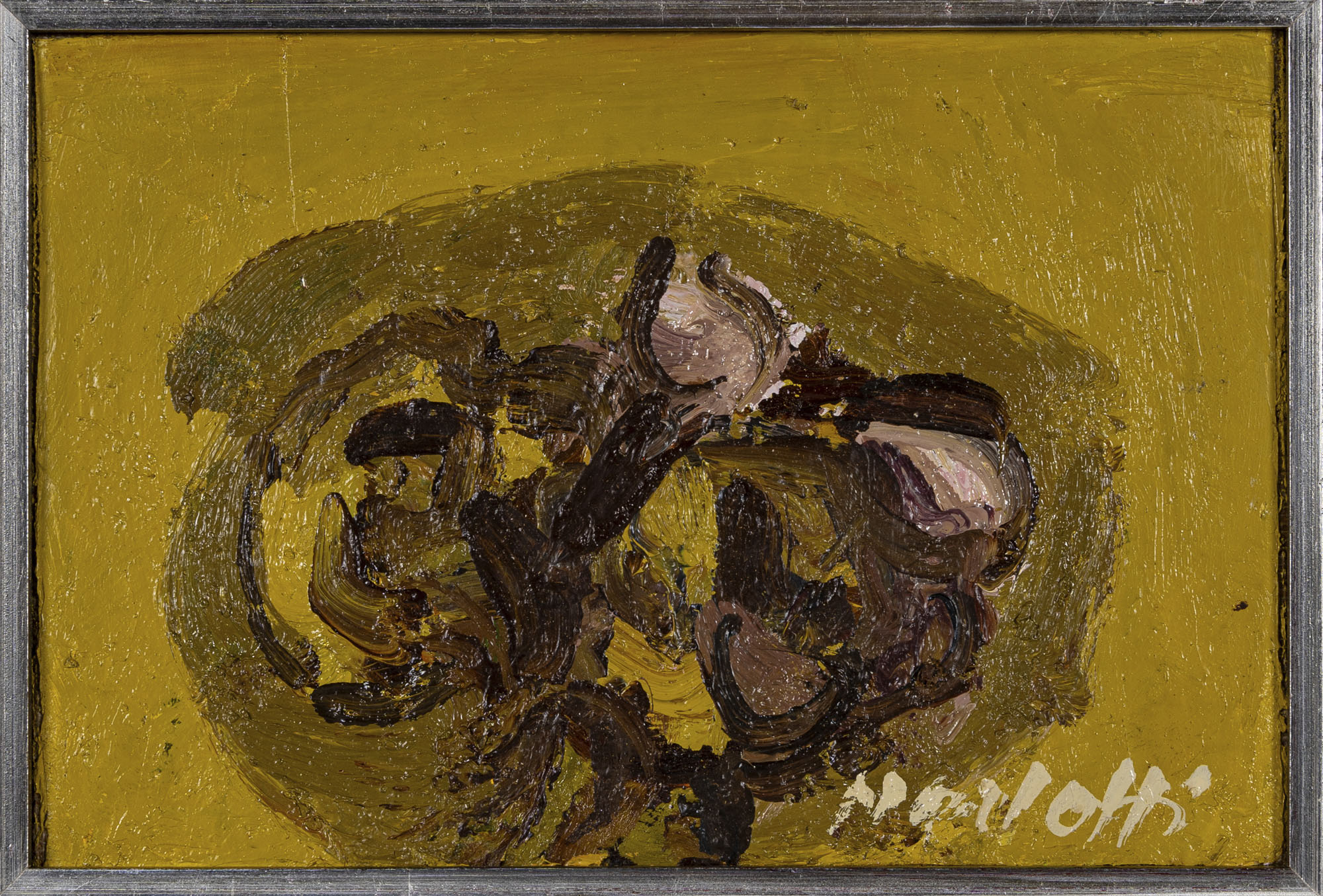 ENNIO MORLOTTI(1910 - 1992)Senza titoloOlio su cartoncino applicato su tela18 x 27 cmFirmato in basso a destraPROVENIENZA:Collezione privata, Lecco