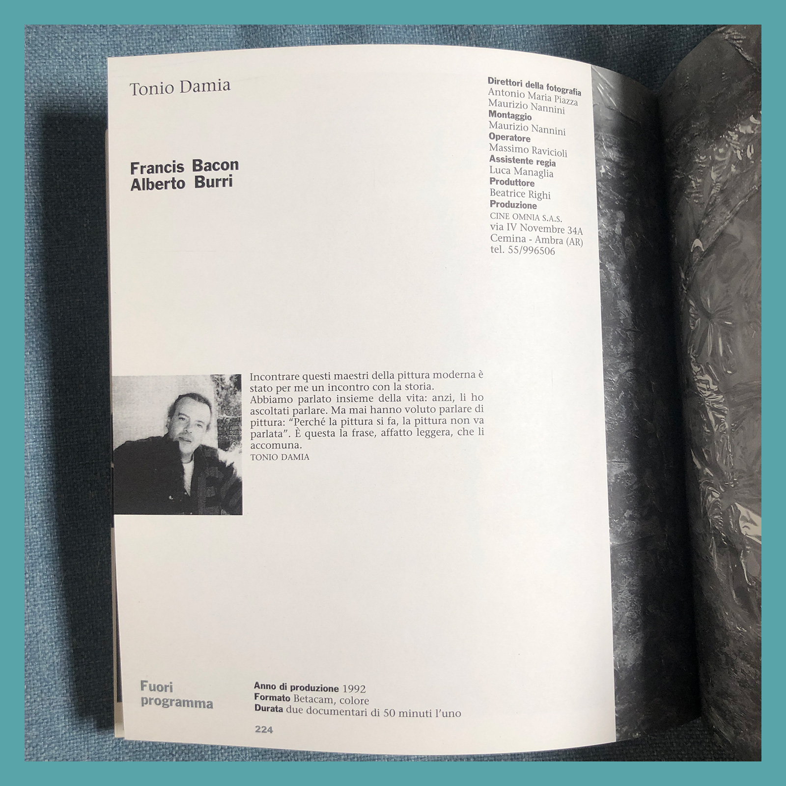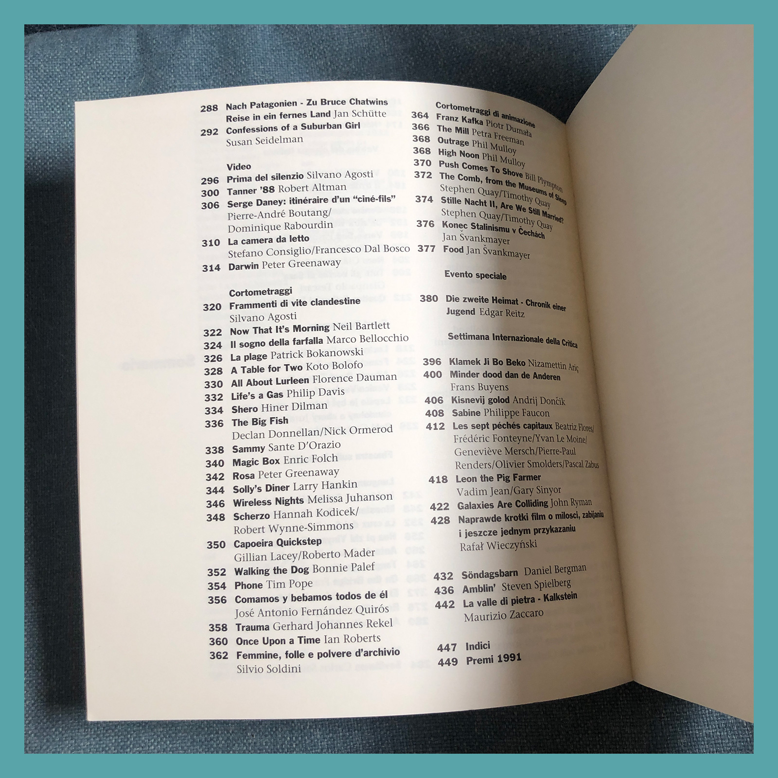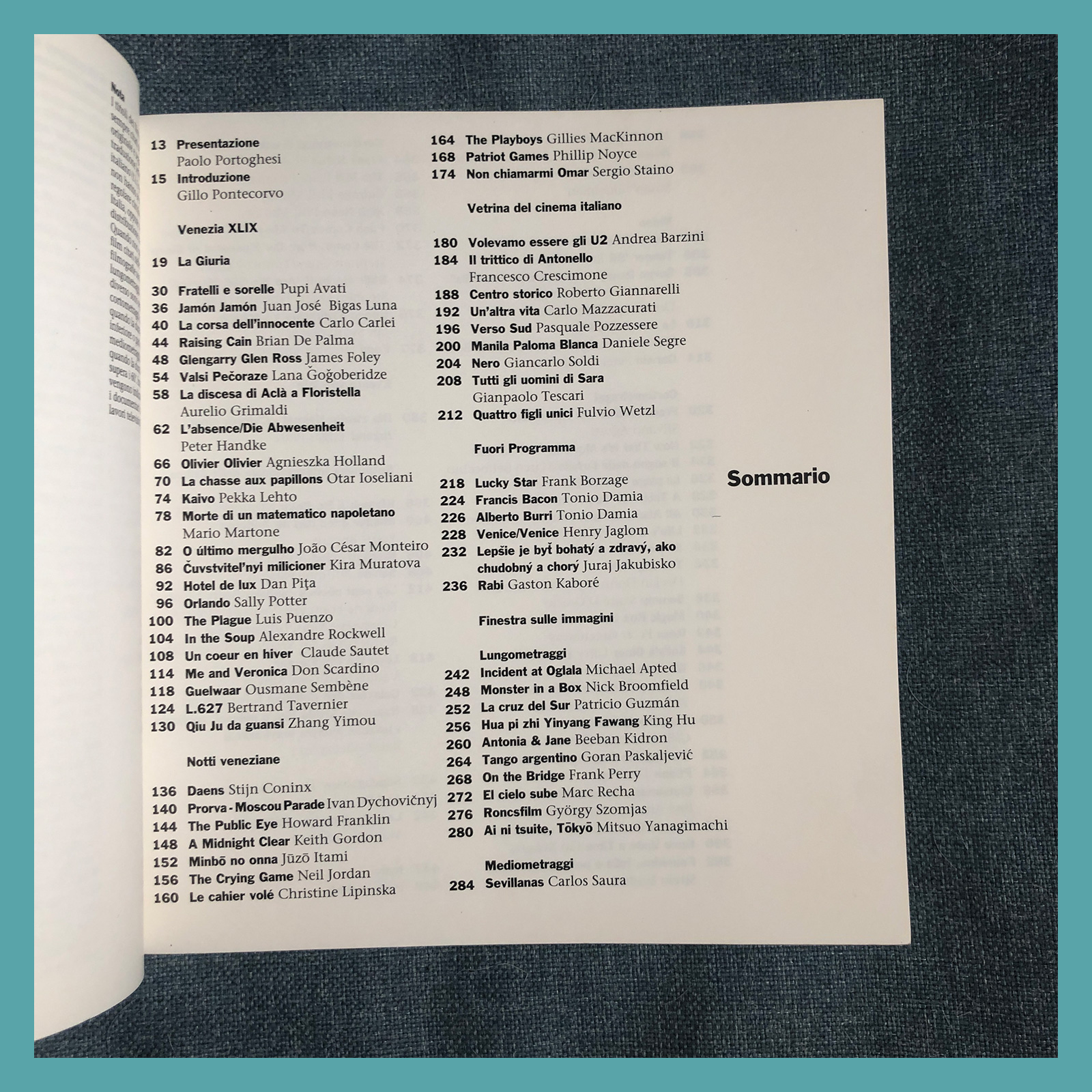M. G. Gervasoni, D. Ducceschi (a cura di), XLIX Mostra Internazionale d'Arte Cinematografica 1932 - 1992, catalogo della 49a Mostra tenutasi a Venezia dal 1 al 12 settembre 1992, Edizioni Biennale, Fabbri Editori, Milano 1992, cm 24x22,5.