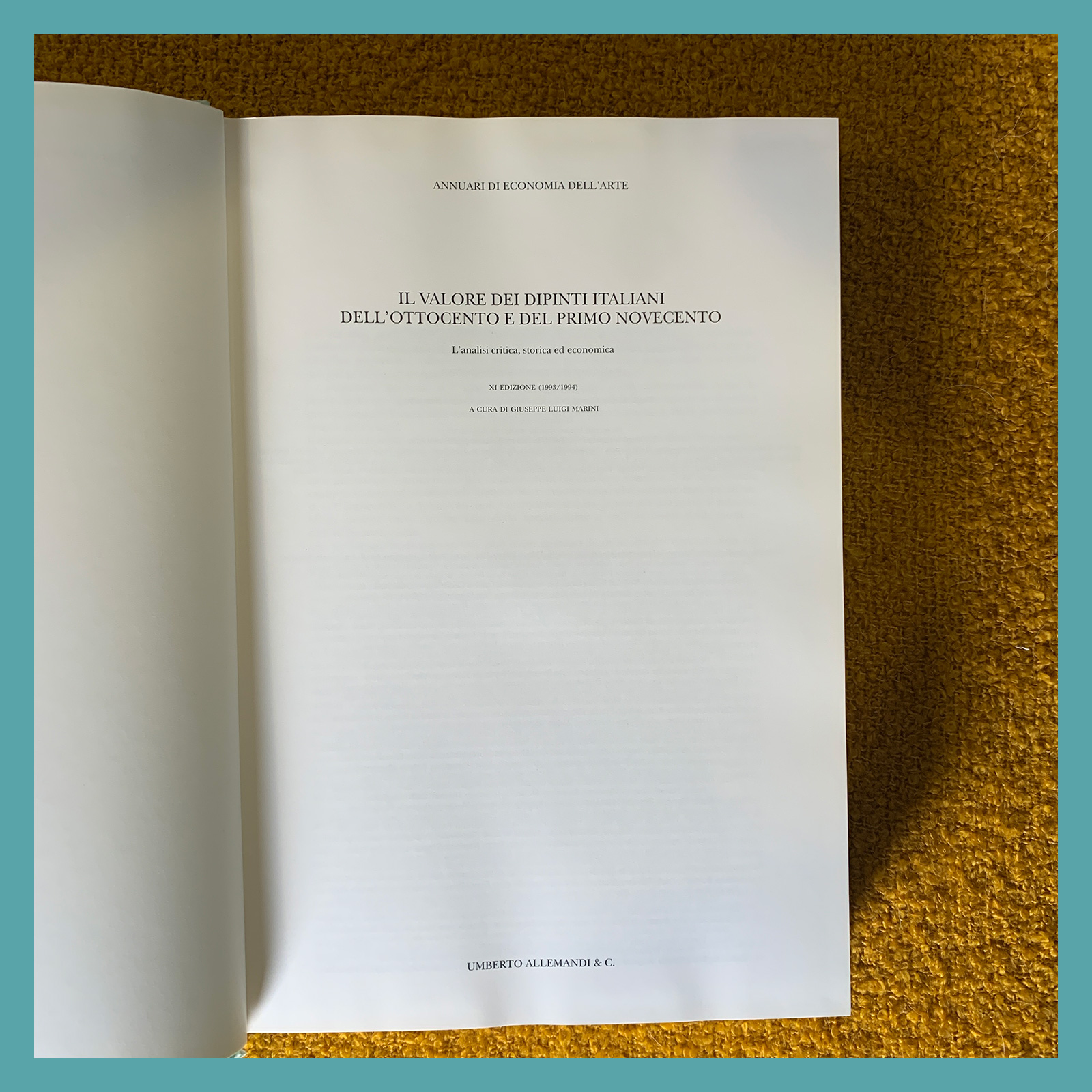 G. L. Marini (a cura di), Il valore dei dipinti dell'Ottocento e del primo Novecento. XI Edizione (1993-1994), Umberto Allemandi & C., Torino 1993, cm 32x22.