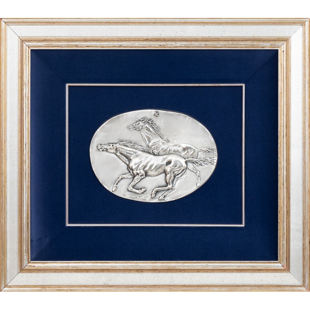 FRANCESCO MESSINA, Cavalli al galoppo, Bassorilievo in argento