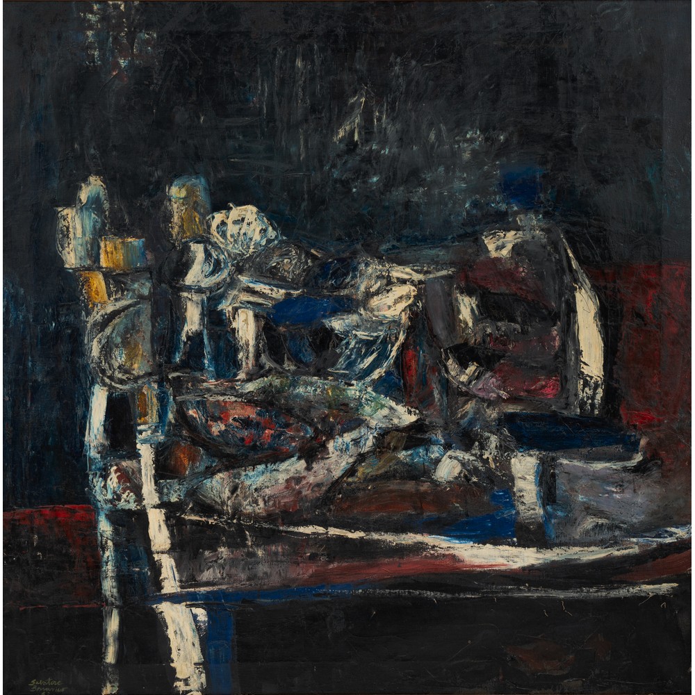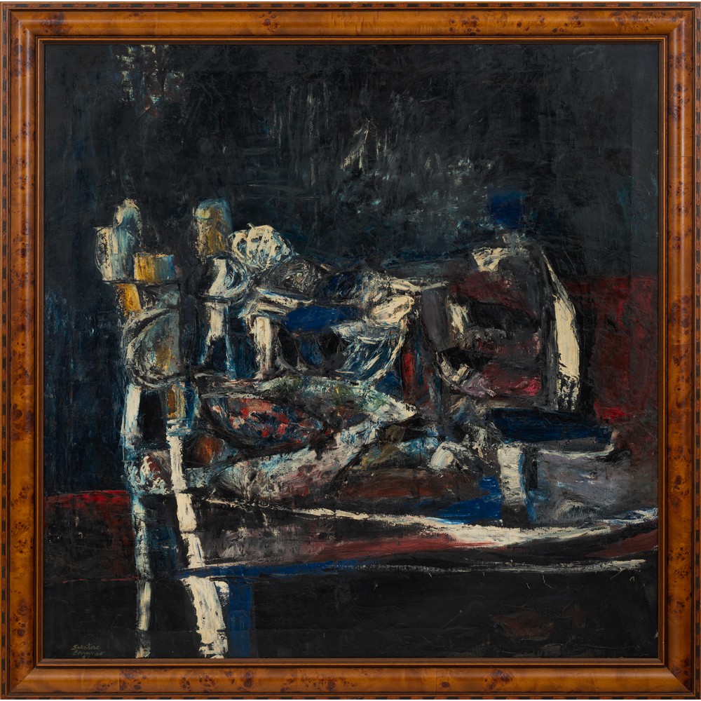 Lot 1485 | TOTÒ BONANNO, Figure e pesci, Olio su tela
