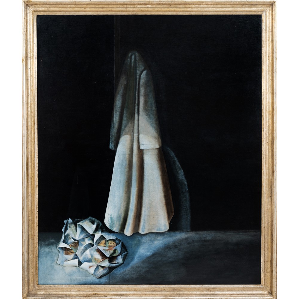 PIETRO D'AGUANNO, Olio e applicazioni cartacee su tela
