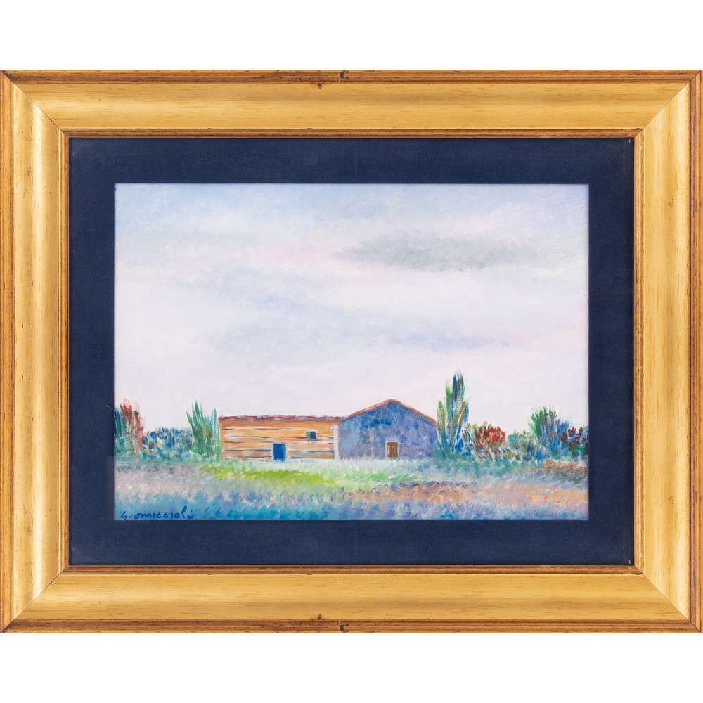 GIOVANNI OMICCIOLI, Casa e capanno, Olio su cartone