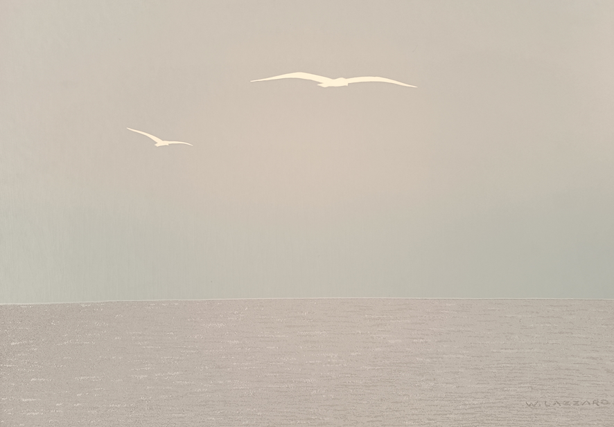 LAZZARO WALTER Roma (Roma) 1914 Gabbiani 1988 Serigrafia su carta gommata es....