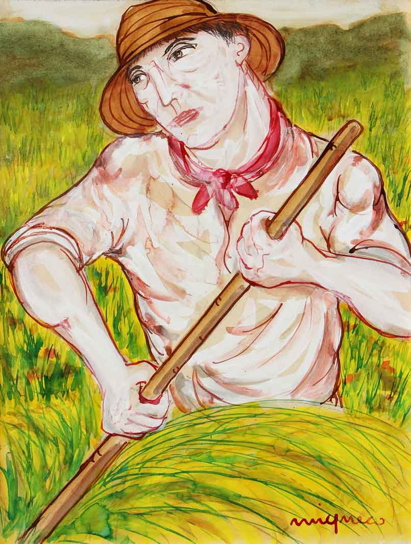 Giuseppe MIGNECO Messina 1908 - Milano 1997 Contadino, 1983 china colorata su carta colour ink on paper cm. 32.5x24 Autentica dell’artista su fotografia con timbro del Catalogo Generale G. Migneco, con n° 3467, a cura della Galleria Bonaparte, Milano Certificate issued by the artist with stamp of the Catalogo Generale G. Migneco, under no. 3467, edited by Galleria Bonaparte Milan Firma ‘Migneco’ (in basso a destra) Timbro del Catalogo Generale Giuseppe Migneco (al retro)