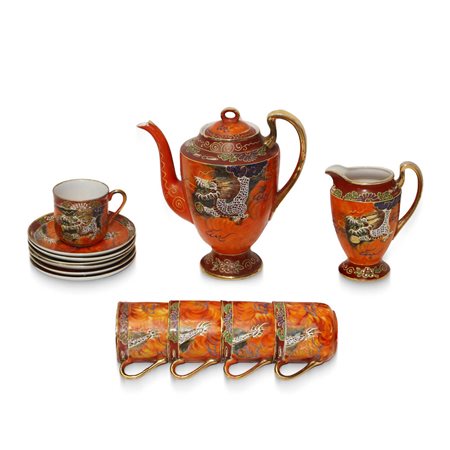 Servizio da caffè nei toni dell'arancione Composto da teiera, lattiera e 5 tazzineComposto da teiera, lattiera e 5 tazzine