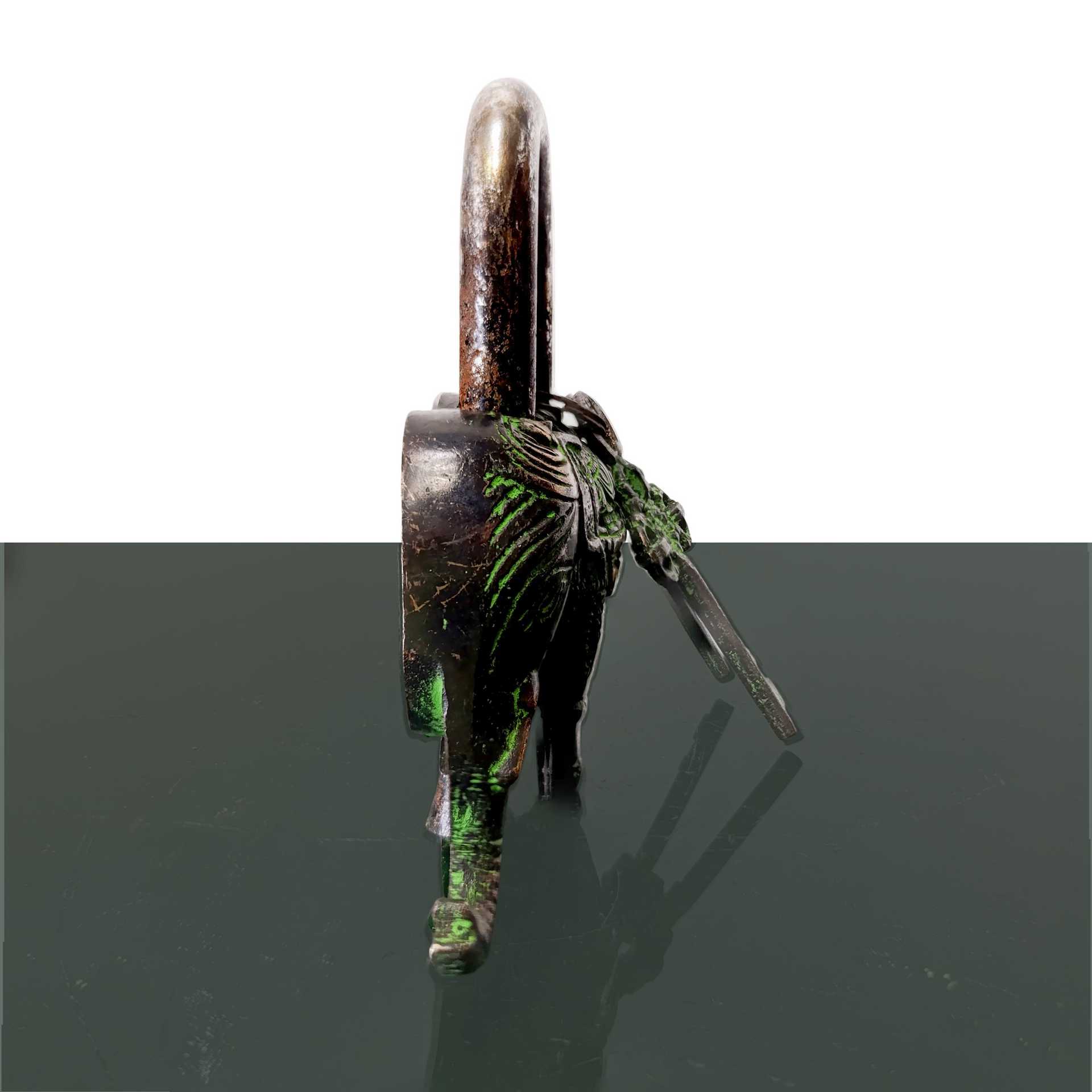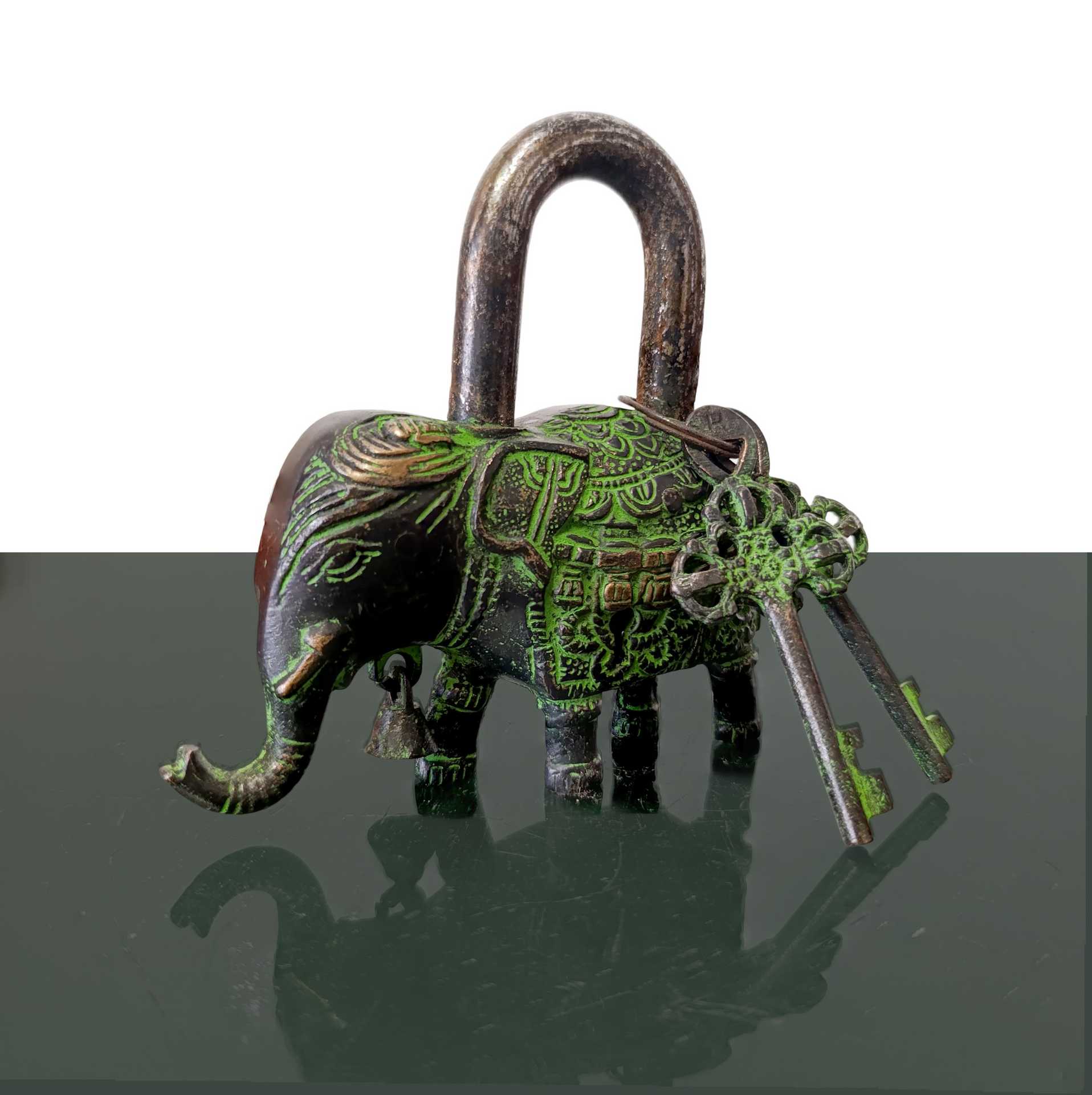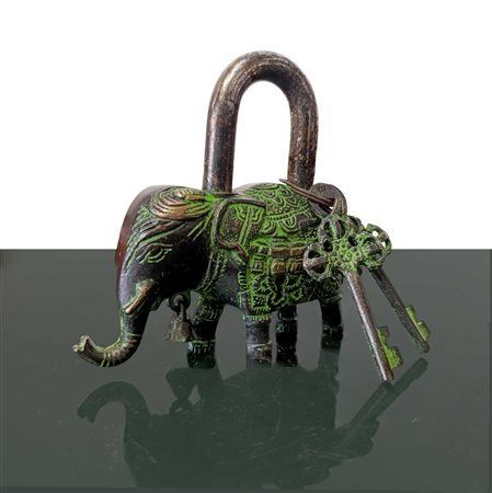 Lucchetto amuleto con elefante e due chiavi