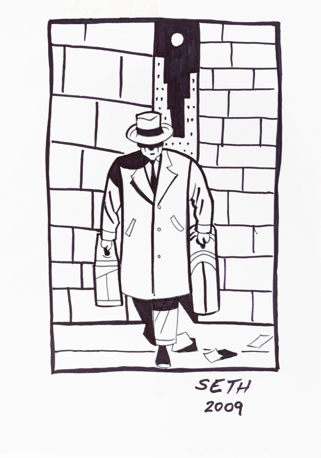 Illustrazione originale realizzata da Seth nel 2009, raffigurante il protagonista della sua celebre graphic novel "Clyde Fans", edita da Drawn & Quarterly tra il 1997 e il 2004. " Seth è uno dei più grandi fumettisti mai esistiti e Clyde Fans è uno dei più grandi graphic novel mai realizzati. Che altro vi serve sapere? " (Chris Ware). Firmata.