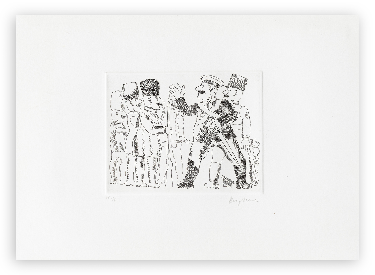 Folder contenente 5 acqueforti di Franz Borghese firmate e numerate (Esemplare HC 1/15) a matita al fronte