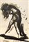 Lucio Fontana (Rosario de Santa Fè 1899 - Comabbio 1968) FIGURA IN PIEDI china nera-oro su carta, cm 100x70 firmato eseguito nel 1962 L’opera è archiviata presso la Fondazione Lucio Fontana con il numero 1598/5