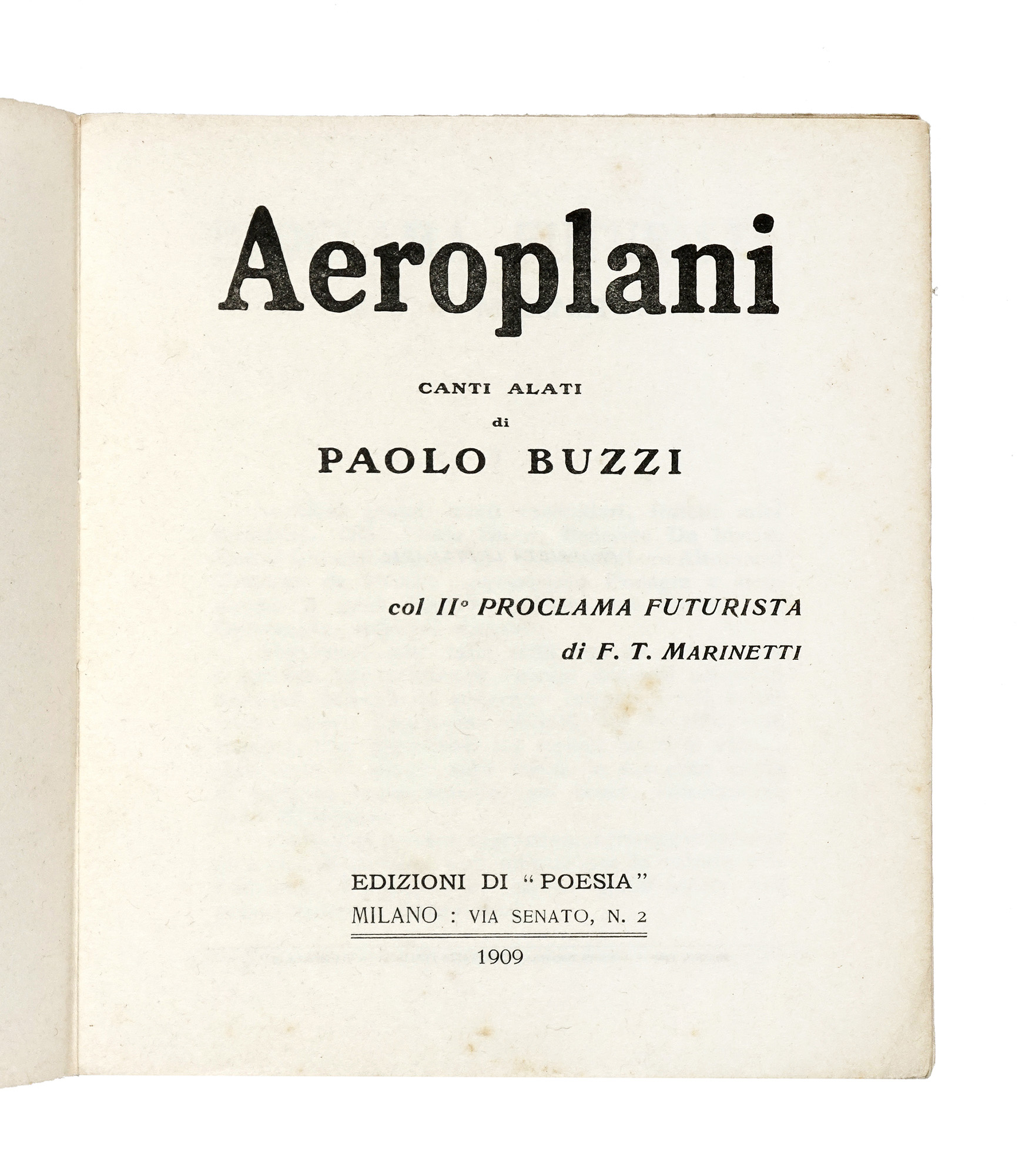 Buzzi Paolo, Aeroplani. Milano: Edizioni di Poesia, 1909.
