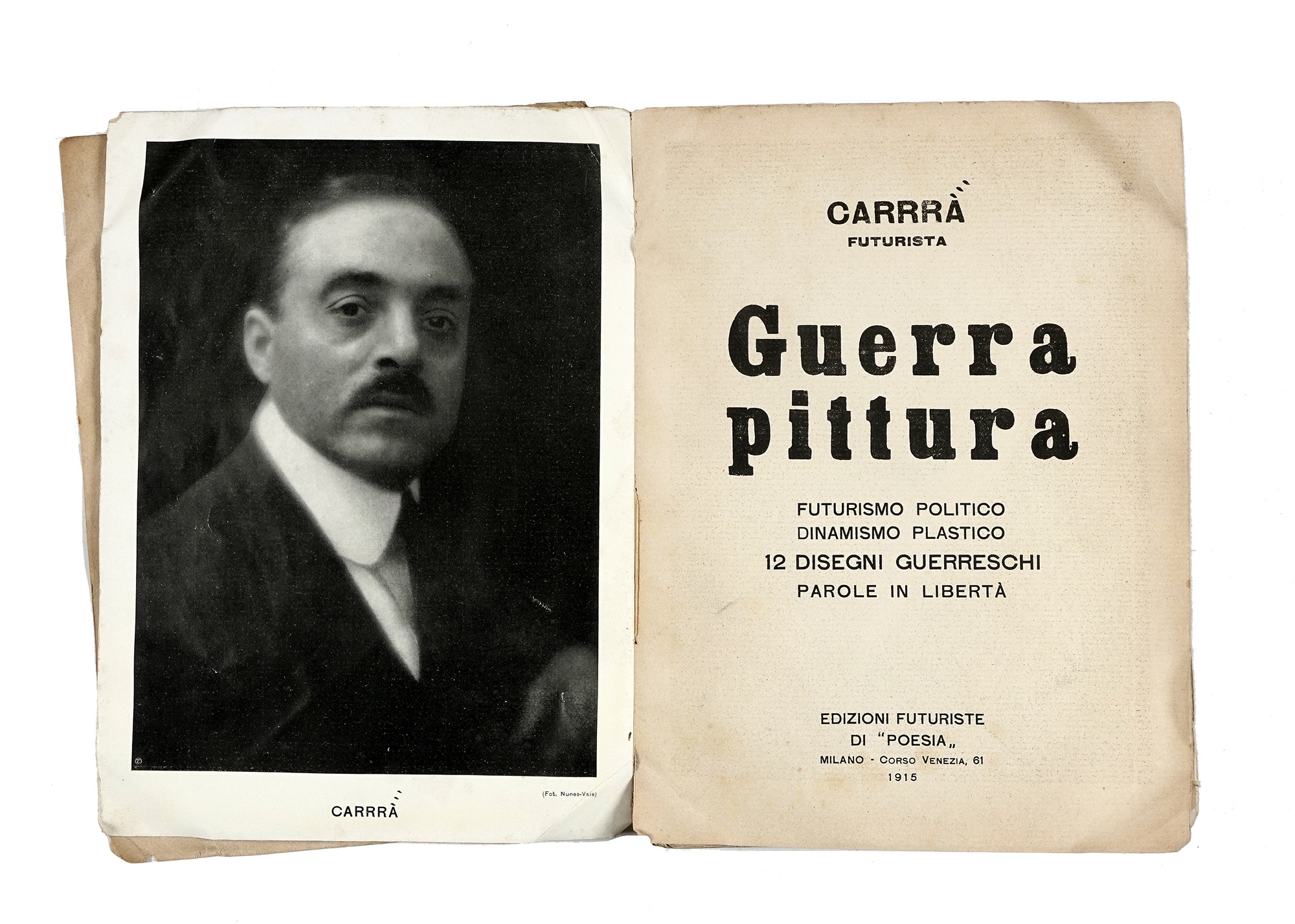 Carrà Carlo, Guerrapittura. Futurismo politico, dinamismo plastico... Milano: Edizioni Futuriste di Poesia, 1915.