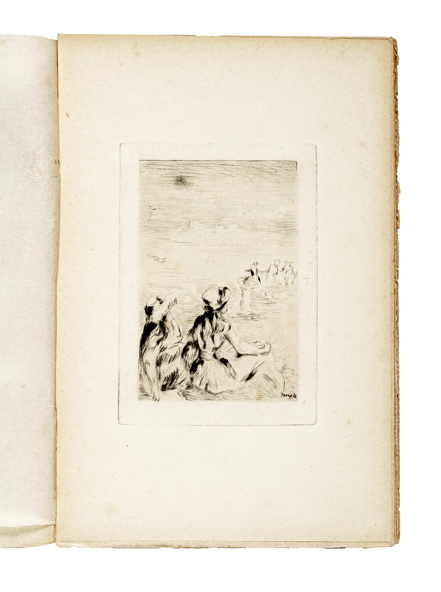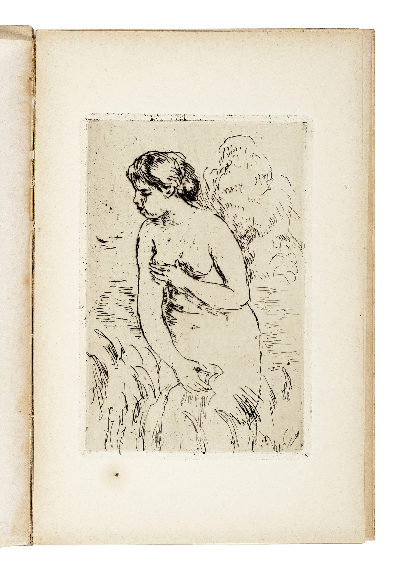 In-4° (mm 252x165). Pagine [4], 149, [5] con 16 tavole fuori testo in bianco e nero, di cui 3 acqueforti originali: due di Pierre Auguste Renoir (Jeunes filles e Baigneuse) e una di Jean-Baptiste Armand Guillaumin (En Hollande), tutte protette da velina. Buona copia in barbe, con fioriture sparse che coinvolgono, tra le altre, le veline e una delle tavole. Brossura editoriale con titoli al piatto anteriore e al dorso. Quest'ultimo presenza evidenti fragilità, anche alle cerniere, e una mancanza in prossimità della cuffia superiore. (1) Seconda edizione di questa prima storia dell'Impressionismo.