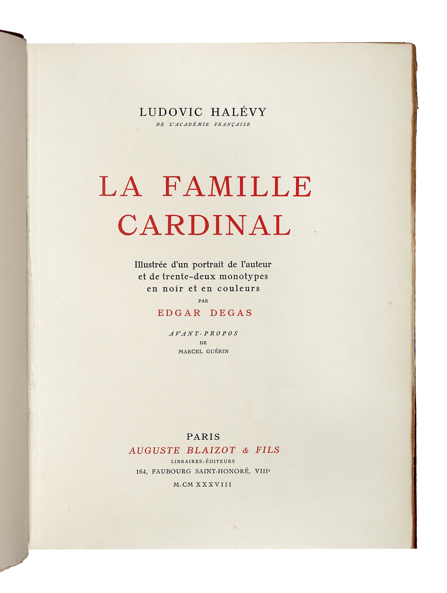 Halévy Ludovic, La Famille Cardinal... Paris: Auguste Blaizot & Fils, 1938.