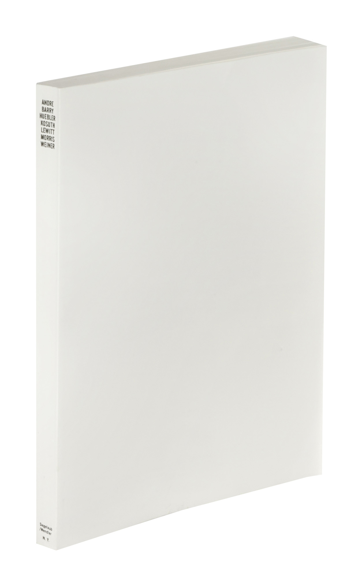 In-4° (mm 279x210). Profusamente illustrato con i contributi di Carl Andre, Robert Barry, Douglas Huebler, Joseph Kosuth, Sol LeWitt, Robert Morris e Lawrence Weiner, riprodotti in offset. Brossura editoriale con i titoli in nero al dorso e la sovraccoperta originale in acetato. Ottima conservazione. (1) Introvabile edizione in facsimile del 2015 di questo documento di straordinaria importanza per l'arte concettuale, ripubblicato in occasione della mostra Seth Siegelaub: Beyond Conceptual Art allo Stedelijk Museum di Amsterdam. Pubblicato originariamente nel 1968 dai galleristi Seth Siegelaub e John W. Wendler, questo leggendario libro d'artista concettuale, comunemente chiamato "Xerox Book" per il tipo di stampa scelto inizialmente da Siegelaub (poi sostituita in corso d'opera da una normale stampa offset, decisamente meno dispendiosa di quella ottenuta con una macchina Xerox), raccoglie i contributi degli artisti Carl Andre, Robert Barry, Douglas Huebler, Joseph Kosuth, Sol LeWitt, Robert Morris e Lawrence Weiner, ognuno dei quali contribuì alla realizzazione dell'opera inviando 25 disegni in bianco e nero fotocopiati.