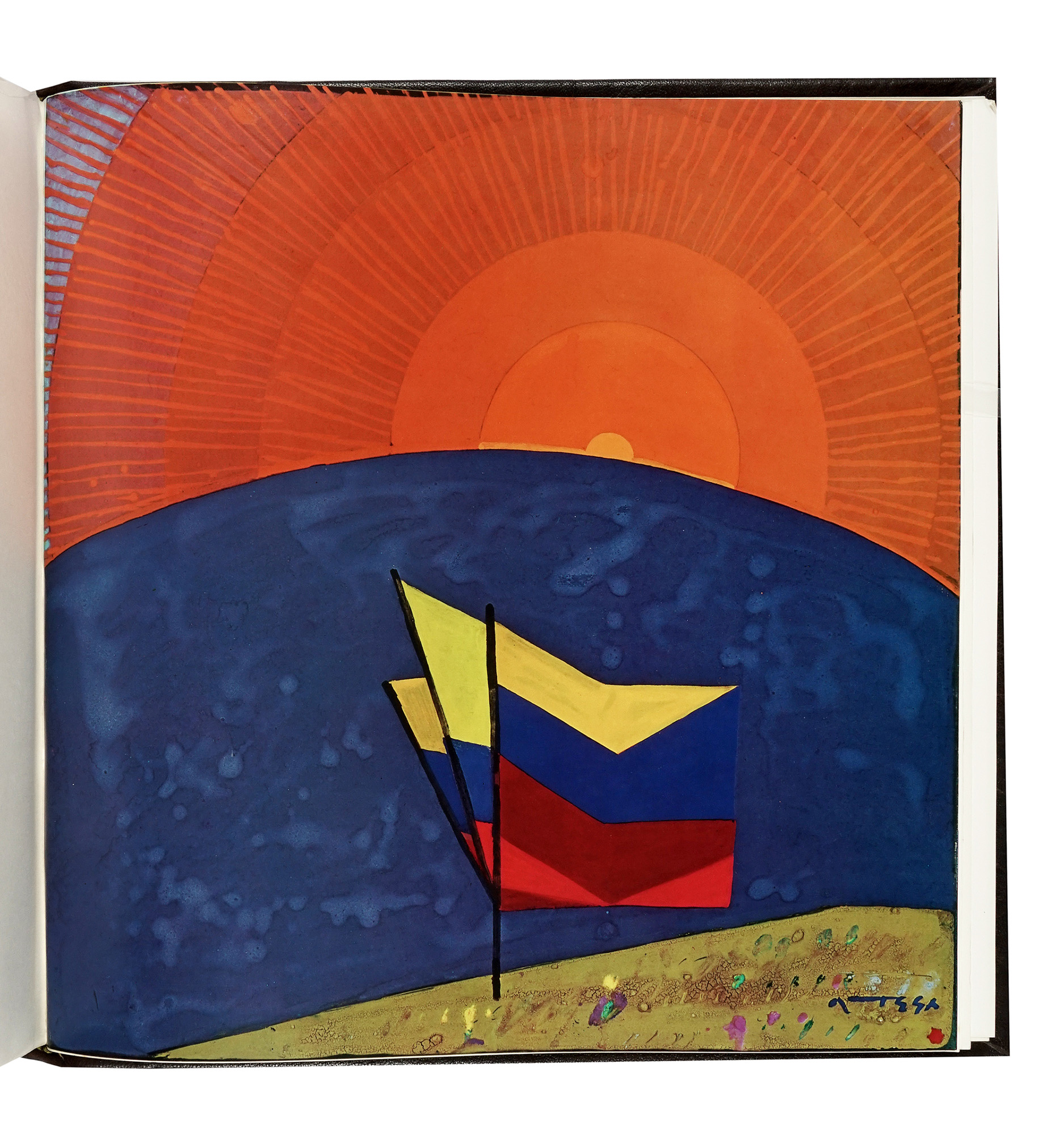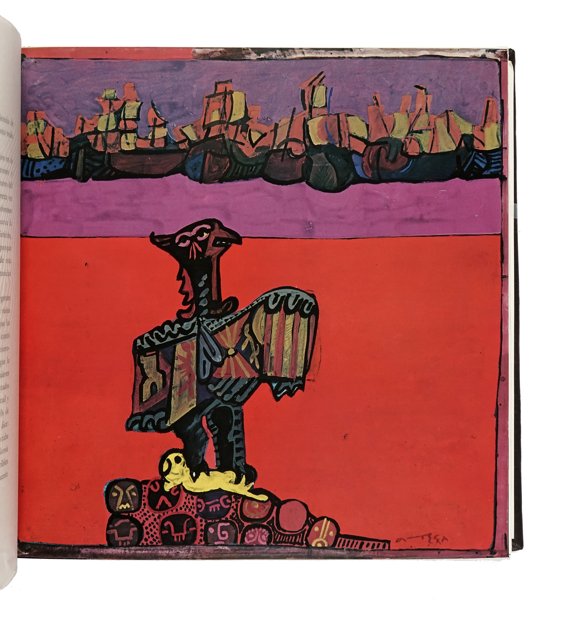 In-folio quadrato (mm 490x490). Con 33 belle tavole a colori fuori testo di Ortega, protette da velina. Opera complessivamente in ottime condizioni, ad eccezione di qualche lieve piega ad alcune delle veline. Legatura editoriale in piena pelle con bassorilievo in bronzo al piatto anteriore raffigurante Bolivar e titoli in oro al dorso a 5 nervi. Piccole spellature al piatto anteriore e al dorso. Entro custodia-piedistallo in legno, con minimi segni di usura. Con una dedica autografa di Antonino Pecora a pag. VII. Uno dei 2861 esemplari destinati ai collezionisti e bibliofili, firmati e numerati al colophon dall'Artista. (1)