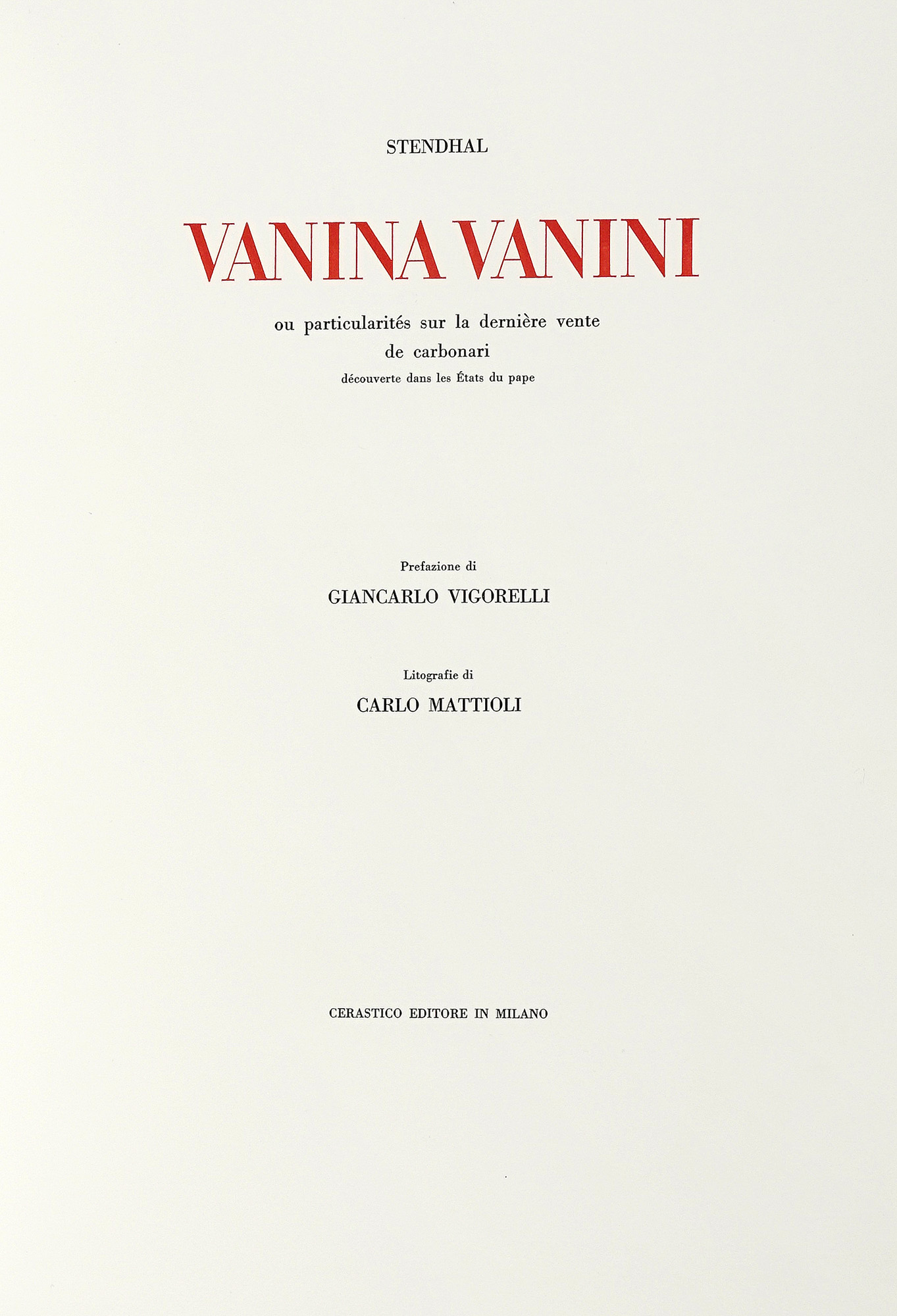 Stendhal (Beyle Henri, detto), Vanina Vanini ou particularités sur la dernière vente de carbonari découverte dans les Etats du pape. Milano: Cerastico Editore, 1970.
