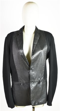 Giacca in pelle e cotone elasticizzato. Tasche con chiusura a cerniera. Capo di campionario FW 2012-2013. Taglia 48 IT. Prodotto in Italia. Perfettamente conservata.