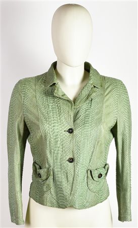 Prada PYTHON LEATHER JACKET DESCRIPTION: Short green python jacket with two...