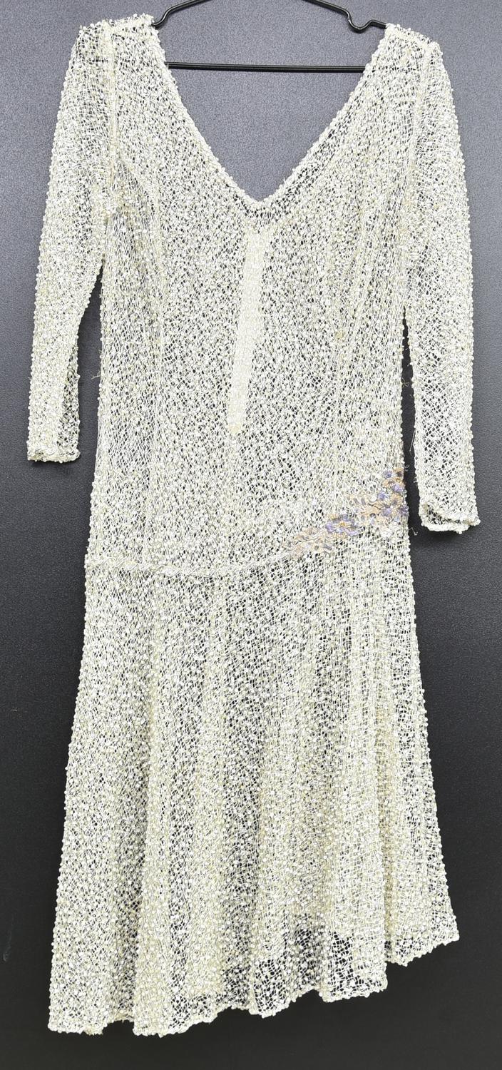 Abito con decoro di paillettes. Manca etichetta di taglia e composizione. Made in Italy. Lavorazione sartoriale. Vista la natura dell’articolo non si escludono piccole mancanze. Ben conservato.