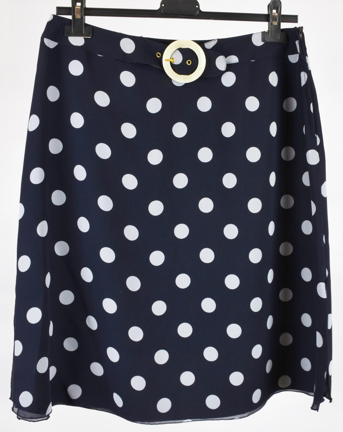 Gonna in seta con cintura in vita. Cerniera laterale. Taglia 46 IT. Prodotto in Italia. Ben conservata.