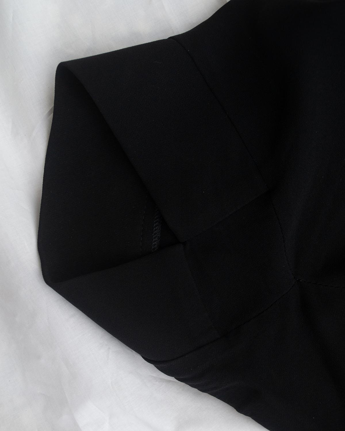 Abito asimmetrico in cady nero drappeggiato, made in England anni '90. Taglia UK 10. Eccellente stato.