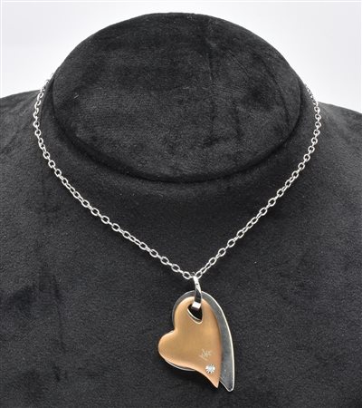 collana donna Yukey by Yukiko in acciaio pvd, oro rosa 18kt e diamante. Pendente con doppio cuore