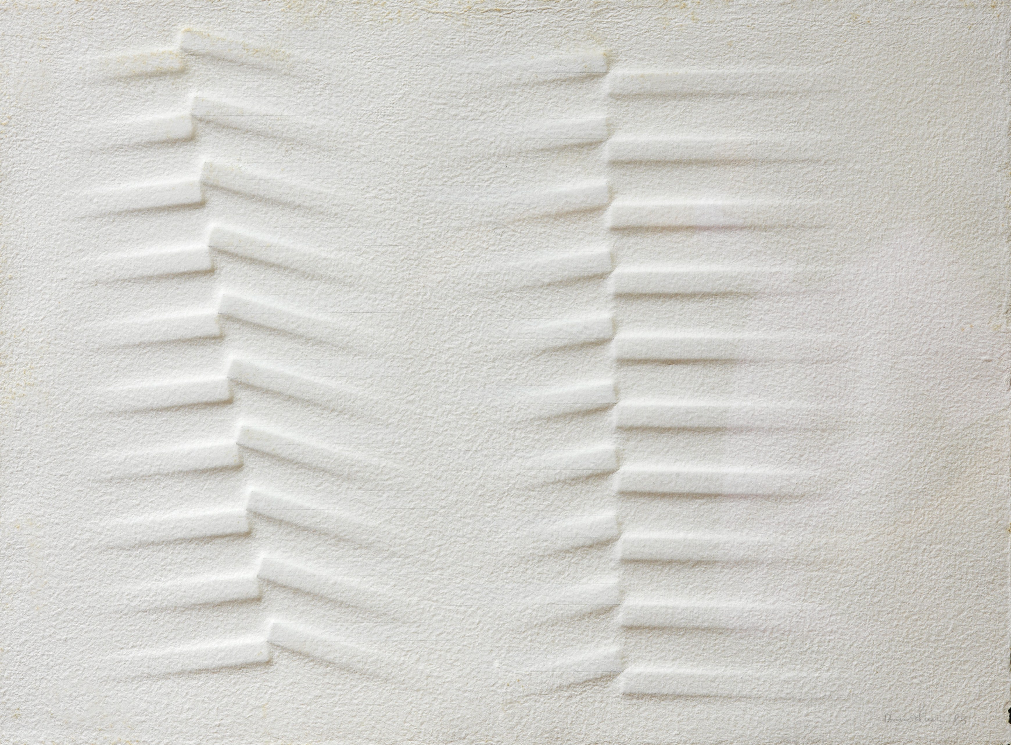 Agostino Bonalumi (Vimercate 1935) SENZA TITOLO tempera e grafite su carta cotone estroflessa, cm 57x76 firmato e datato eseguito nel 1988 L’autenticità dell’opera è stata confermata su fotografia dall’artista