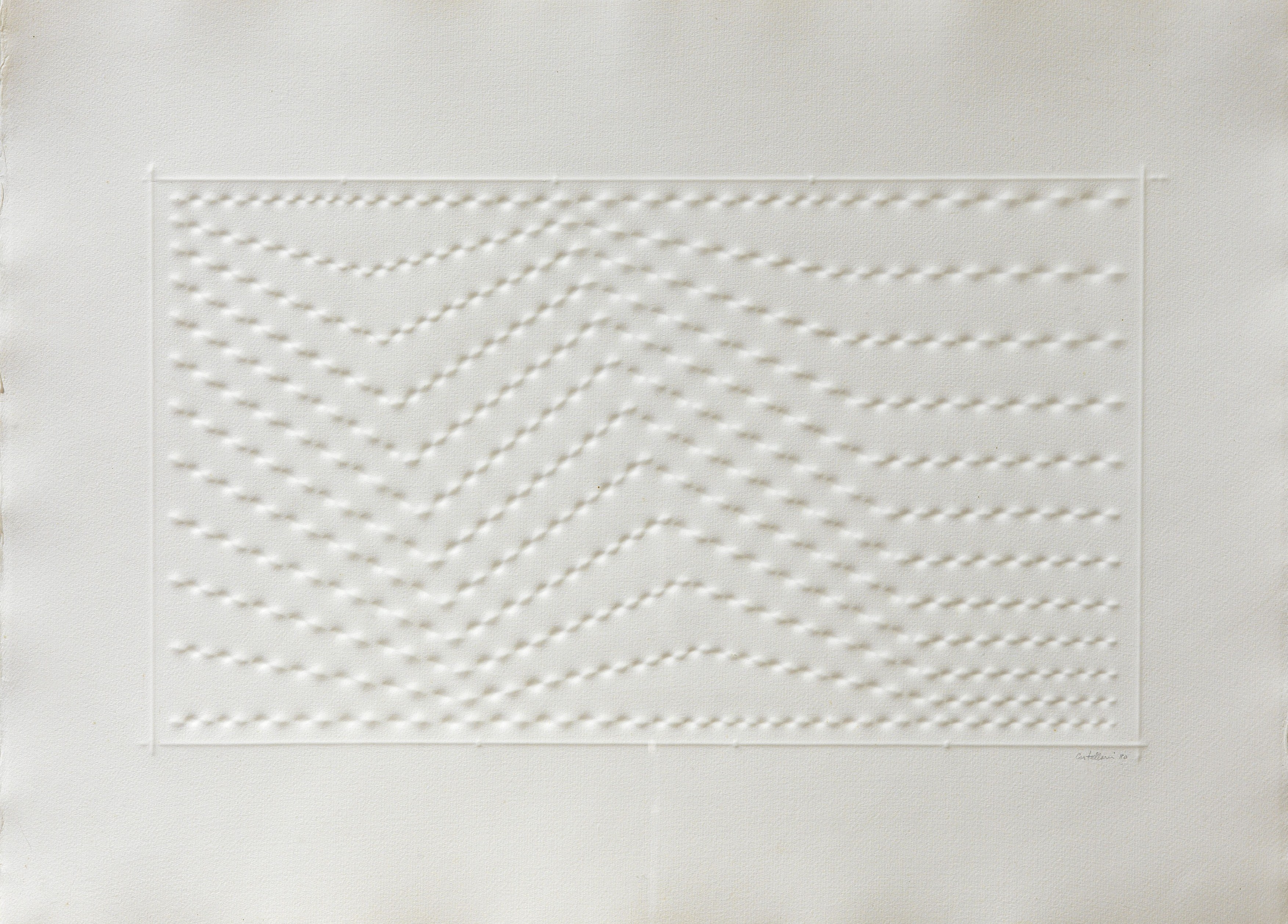 Enrico Castellani (Castelmassa 1930) SENZA TITOLO rilievo su carta cotone, cm...