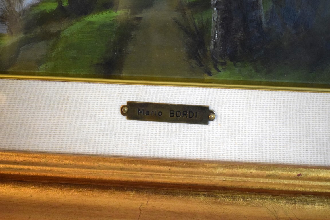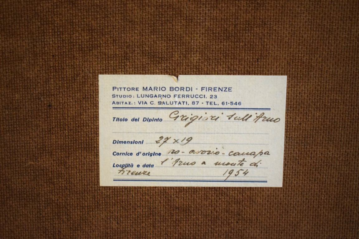 Mario Bordi (Firenze 1896 - 1980), Grigiori sull'Arno 1954 olio su faesite cm...