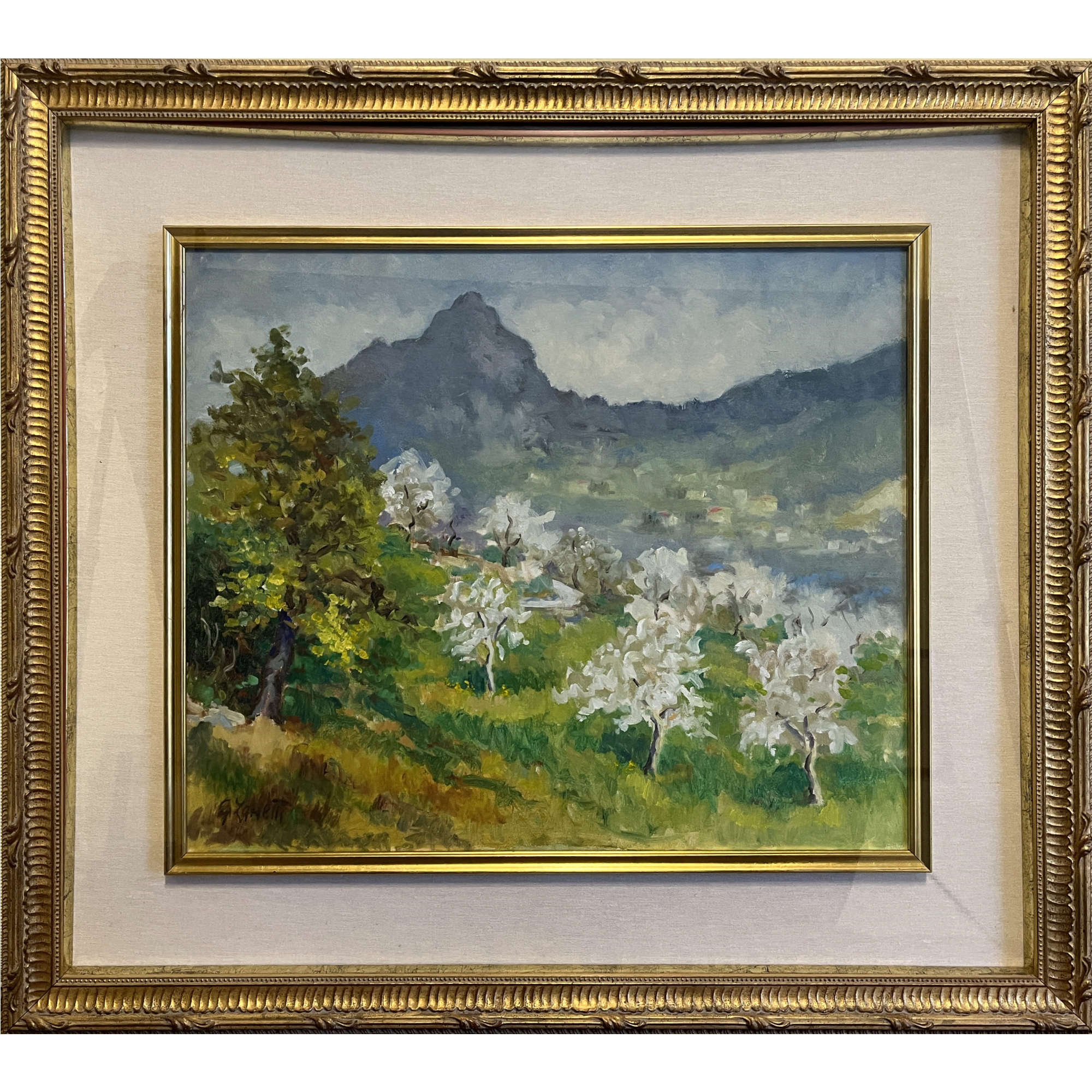 Giovanni Zanetti (1972), Dintorni di Trento, olio su tela, cm 52x62. In cornice cm 78x88. Firmato in basso a sx.