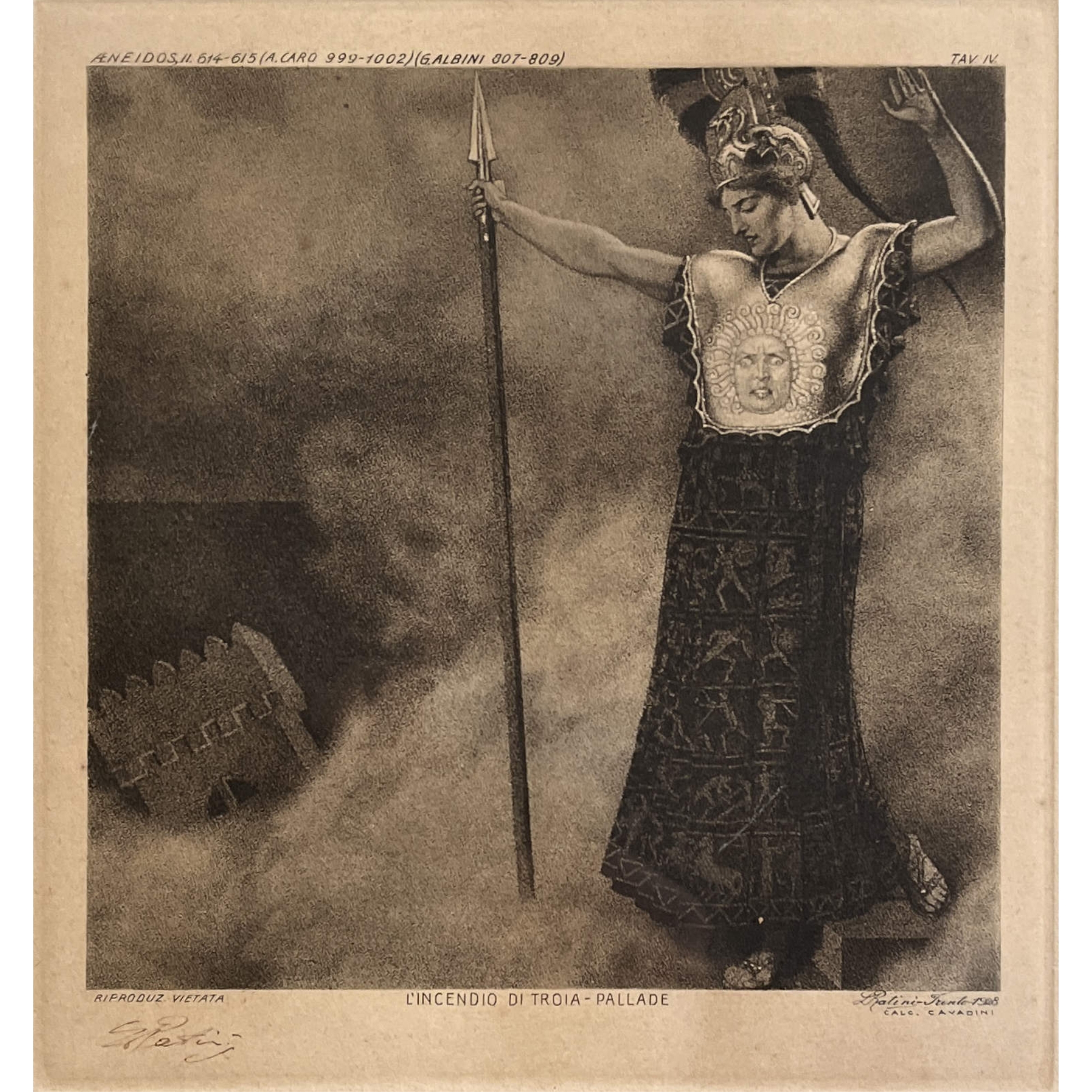 Luigi Ratini (1928), incisione dall' Eneide "Incendio di Troia - Pallade",...