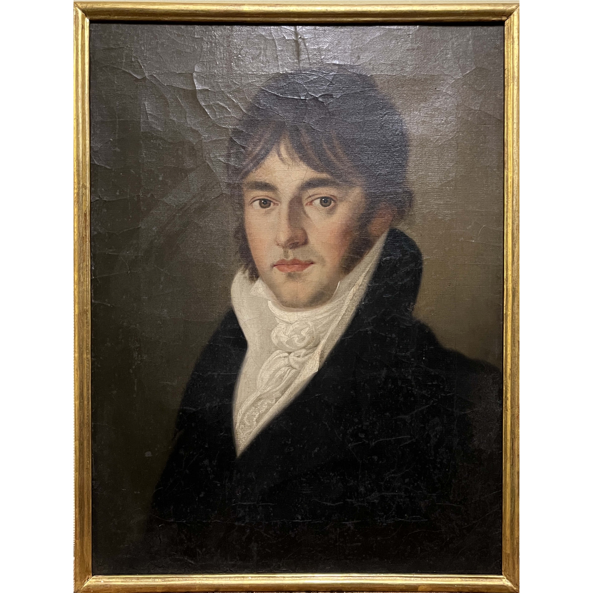 Ritratto di gentiluomo (1815), olio su tela, scuola tedesca. Iscrizione al retro. Cm 54x42. Ottimo stato conservativo. In cornice