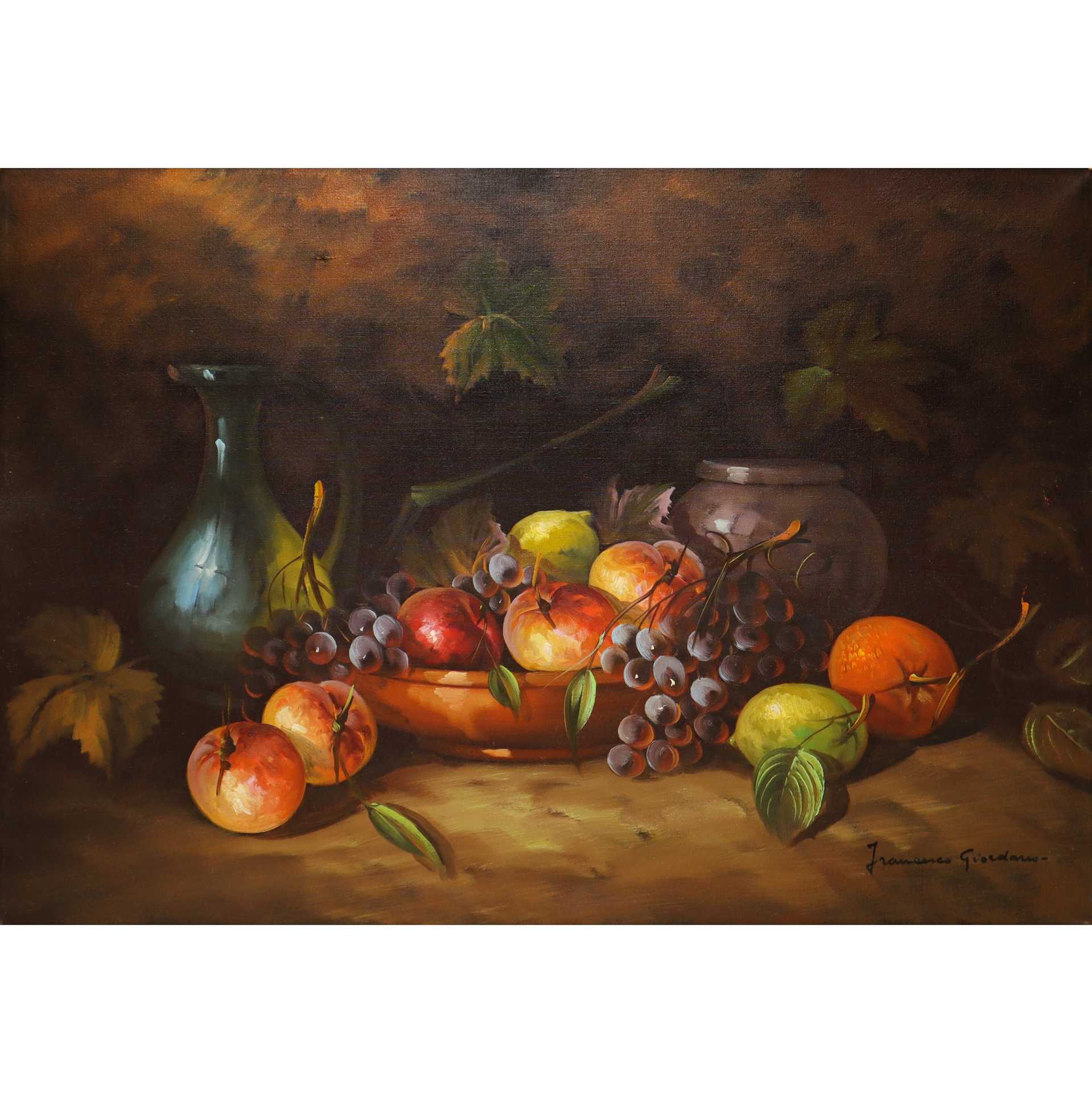 Francesco Giordano (1945) - Natura morta di frutta h cm 50X70 in cornice h cm 68X88 olio su tela Firmato in basso a destra