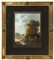 Paesaggio con personaggi, 20° secolo Cm 12x9, in cornice cm 20x18 Dipinto ad olio su su rame In cornice di metallo dorato con pietre dure colore verde