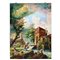 Farnesiana Ceramiche di Carlo Corvi - Maiolica raffigurante paesaggio fluviale con alberi e personaggi, 1950s H cm 122 x 92 Ceramica Composta da 48 formelle cm 15 x 14. In telaio di ferro di forma rettangolare. Firmato in basso a sinistra "Farnesiana Parma" di Carlo Corvi.