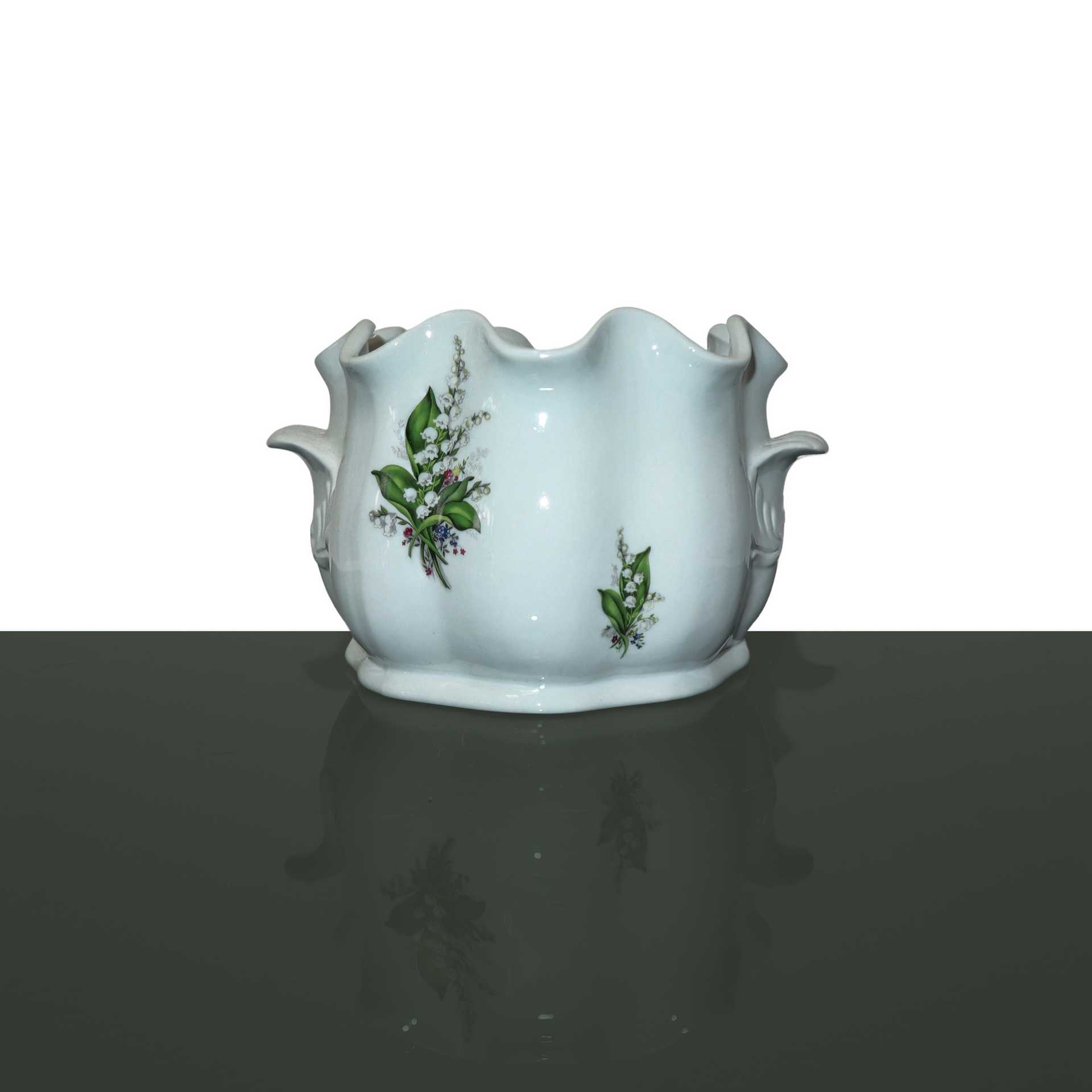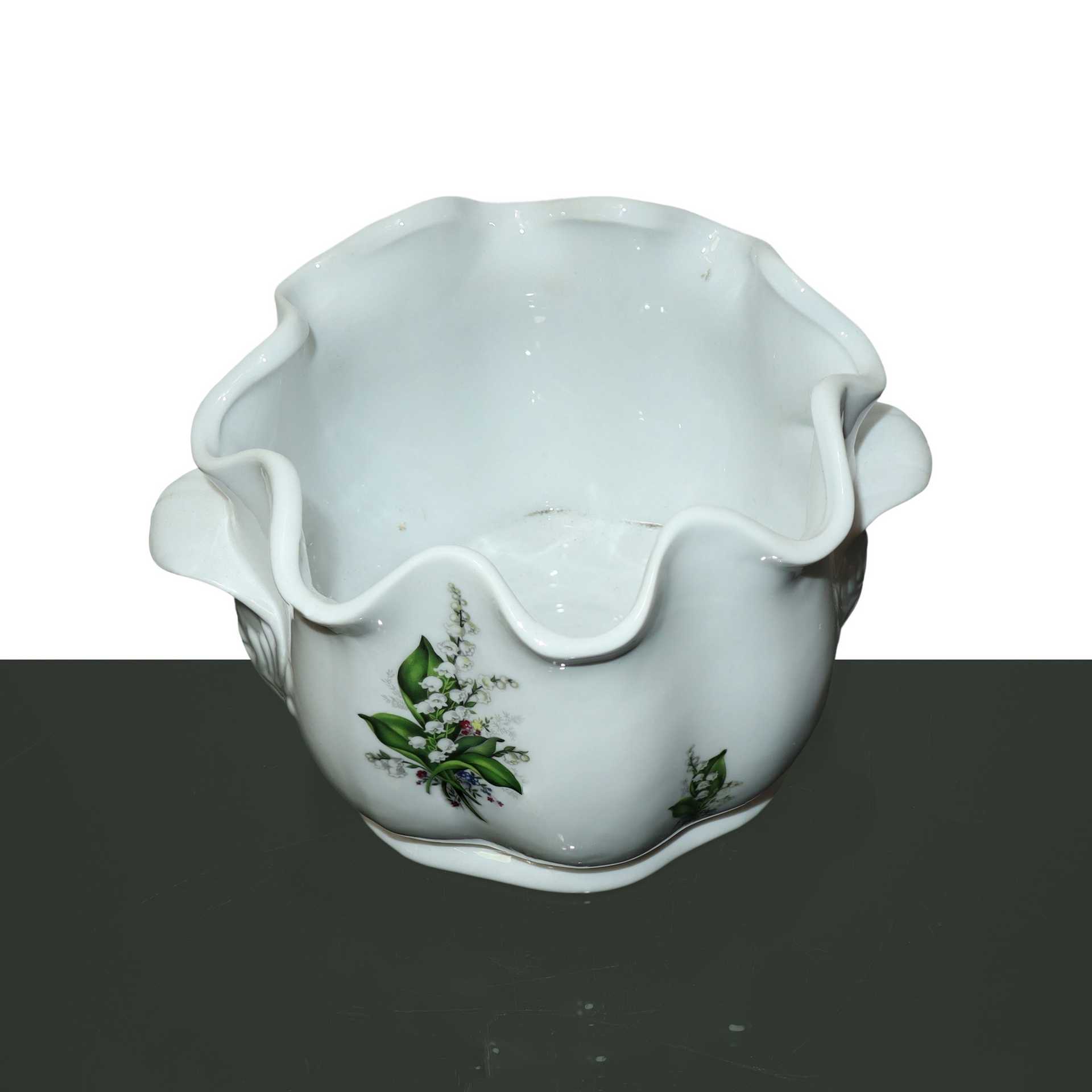 Limoges - Vaso in porcellana Limoges dipinto a mano a motivi floreali h cm 15 diametro cm 19