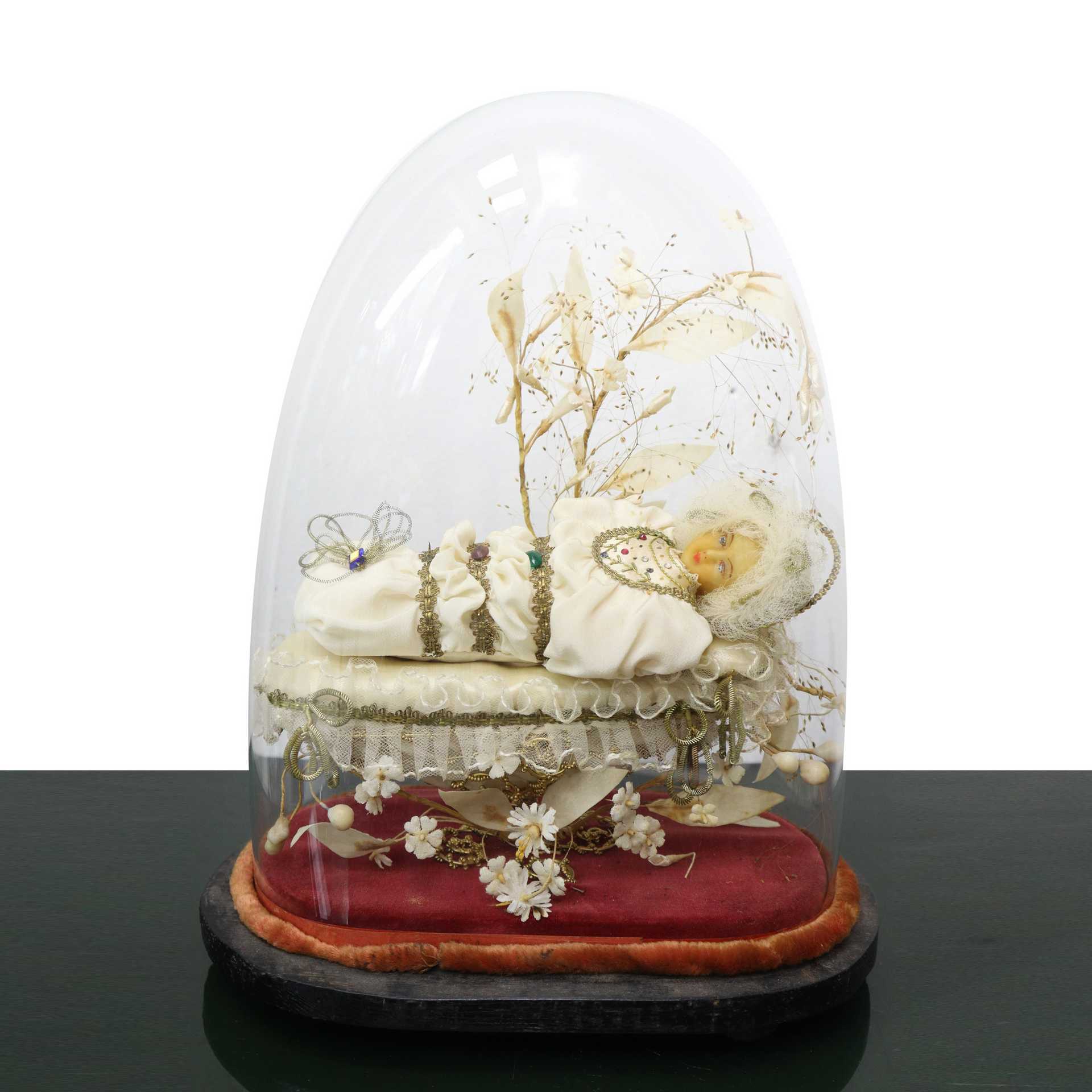Madonna bambina in ceroplastica in teca di vetro, 19° secolo