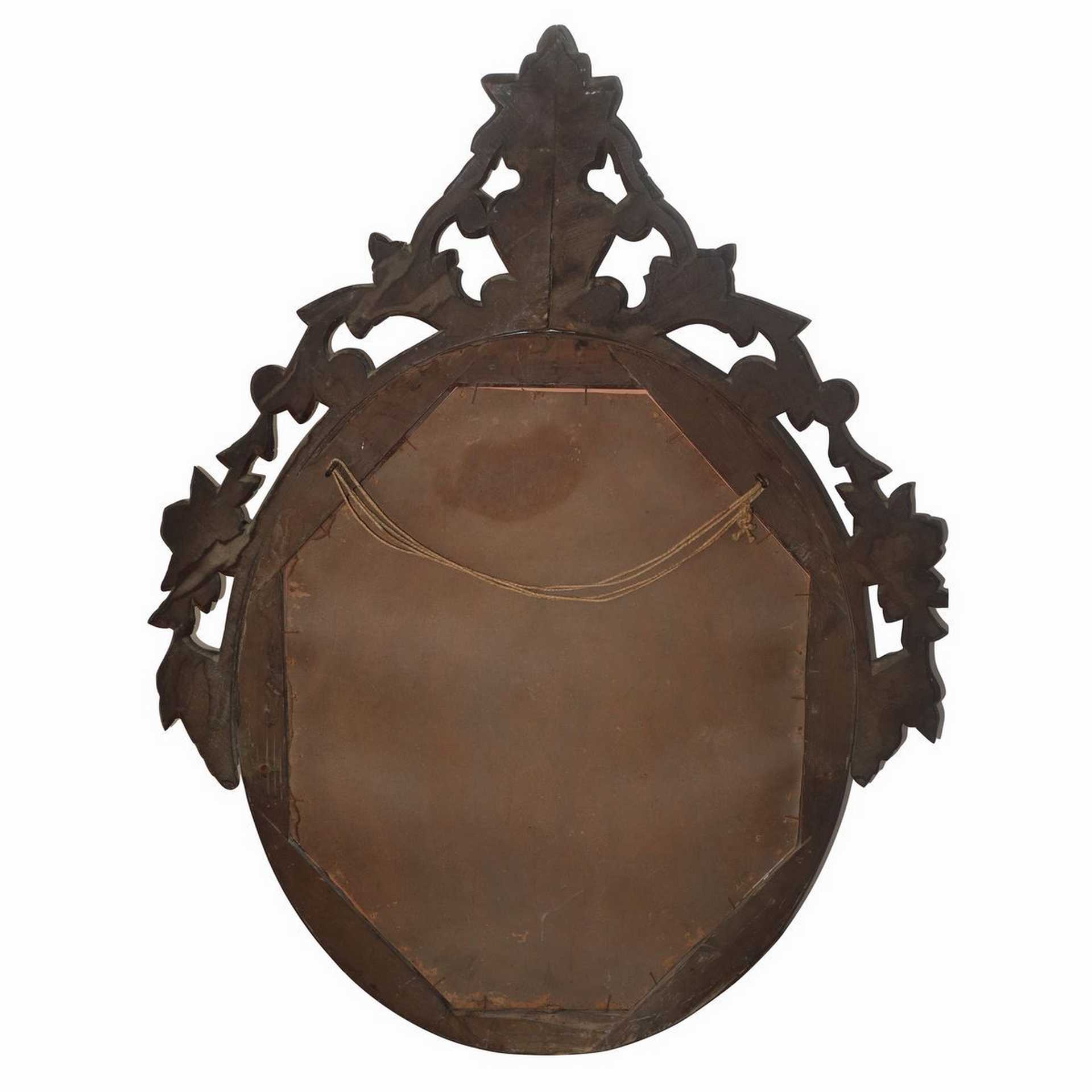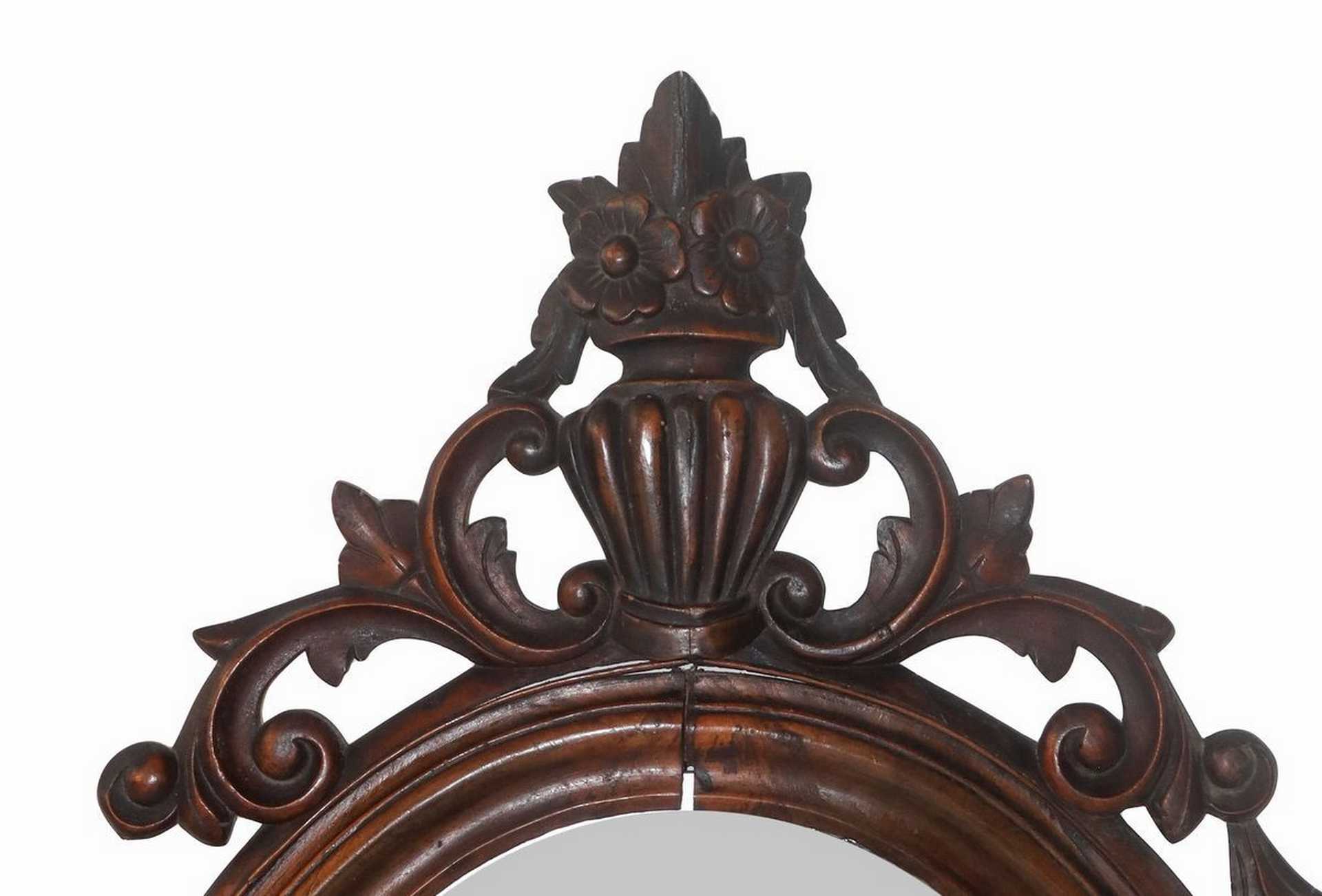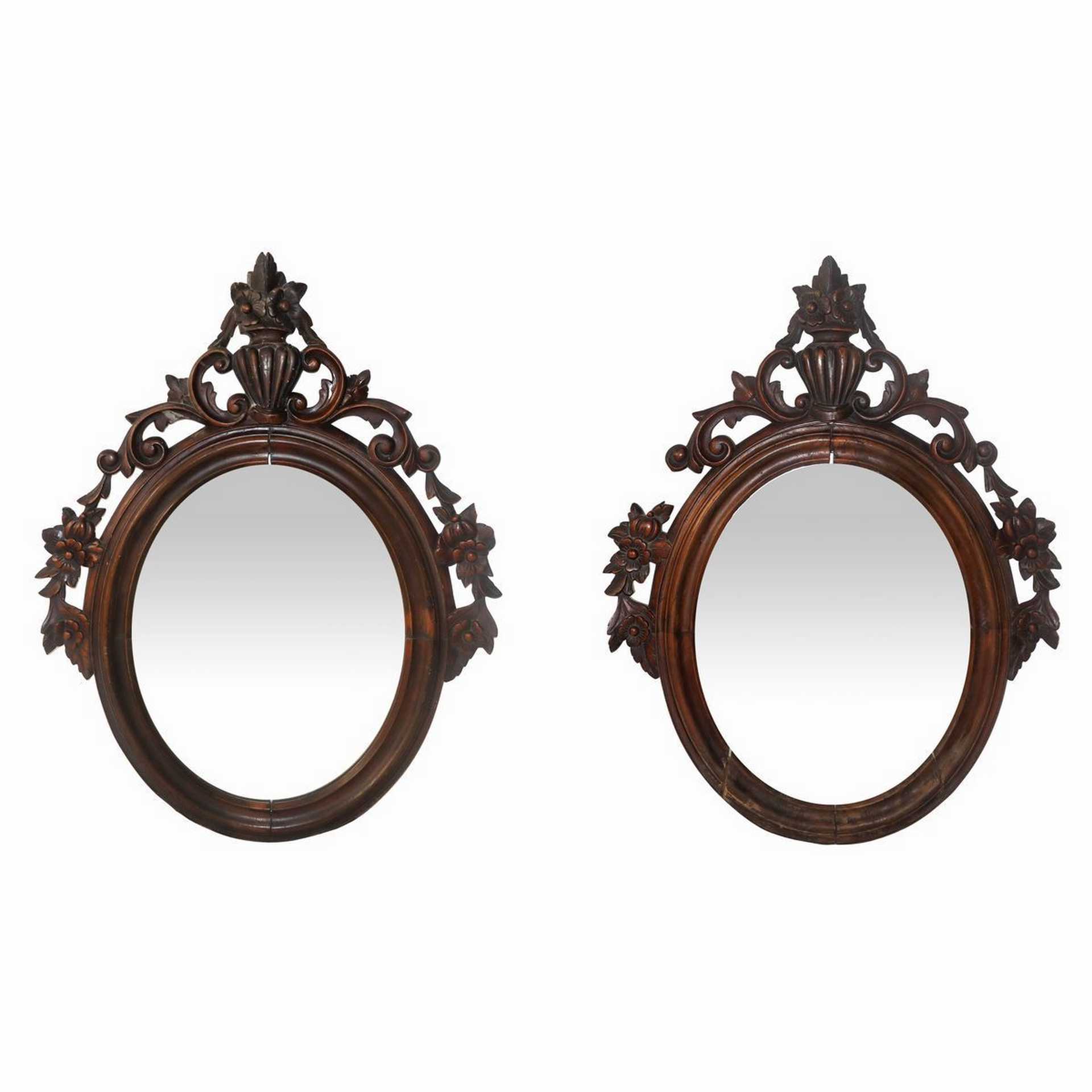 Coppia di specchiere ovali con intagli a motivi floreali applicati., fine 19° secolo