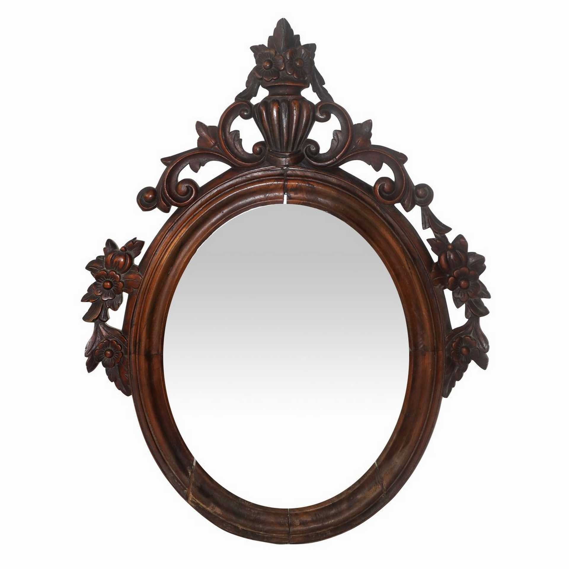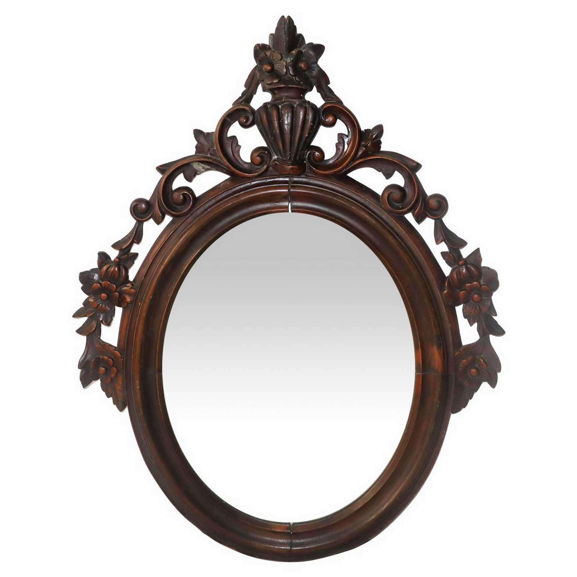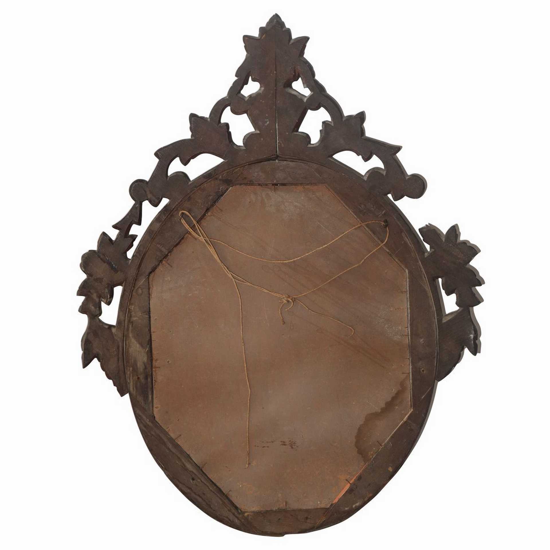 Coppia di specchiere ovali con intagli a motivi floreali applicati., fine 19° secolo