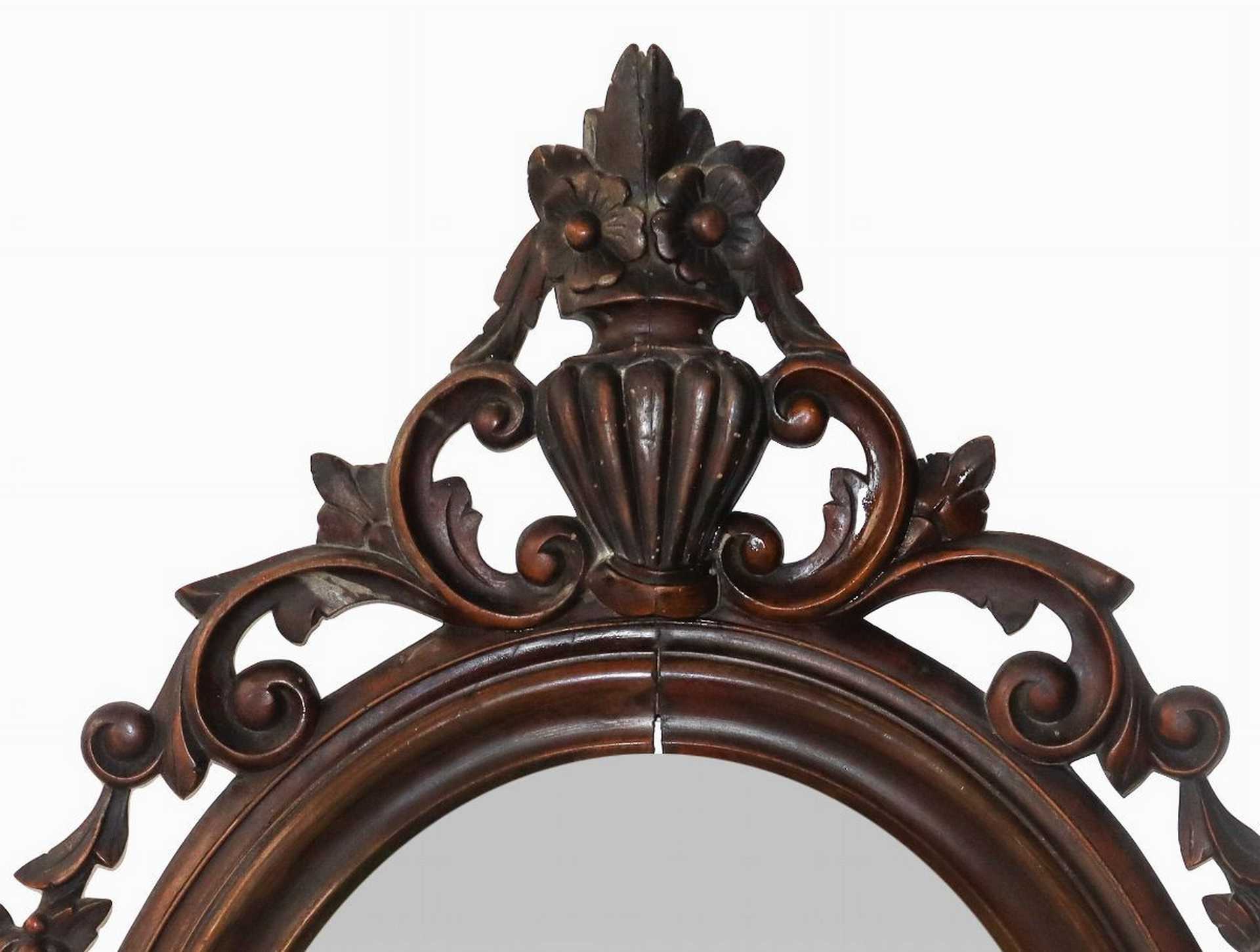 Coppia di specchiere ovali con intagli a motivi floreali applicati., fine 19° secolo H cm 96 x L 76