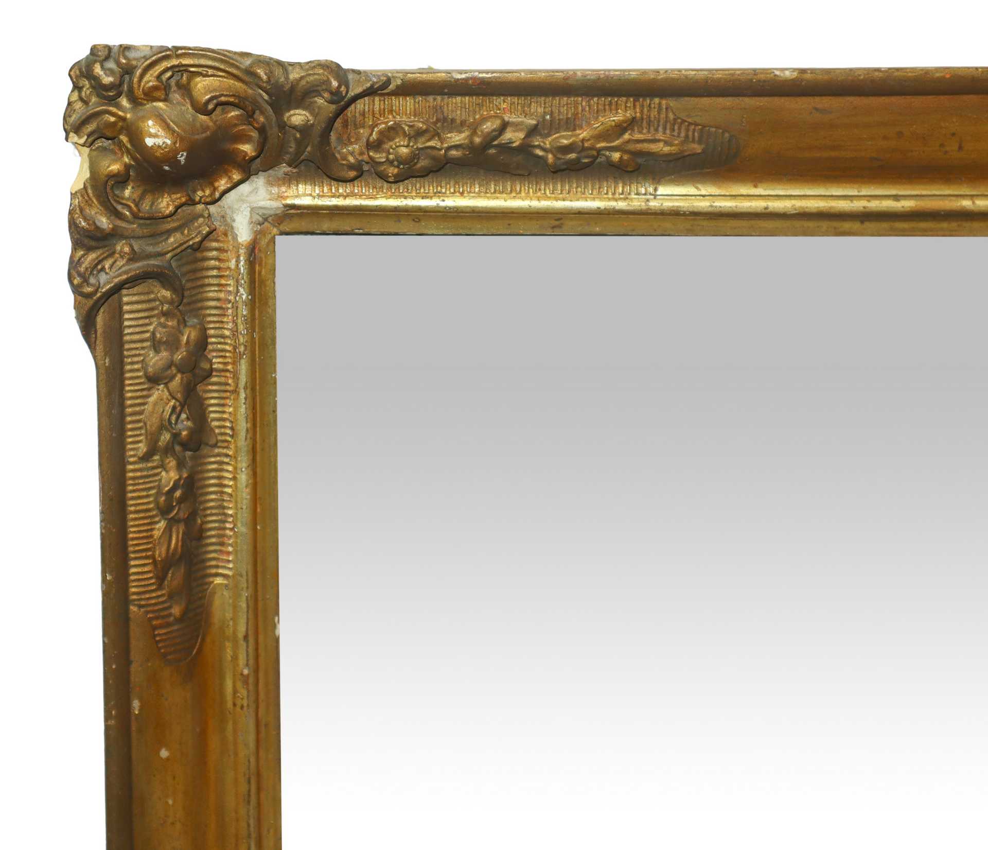 Specchiera rettangolare in legno dorato con applicazione agli angoli in pastiglia, 19° secolo