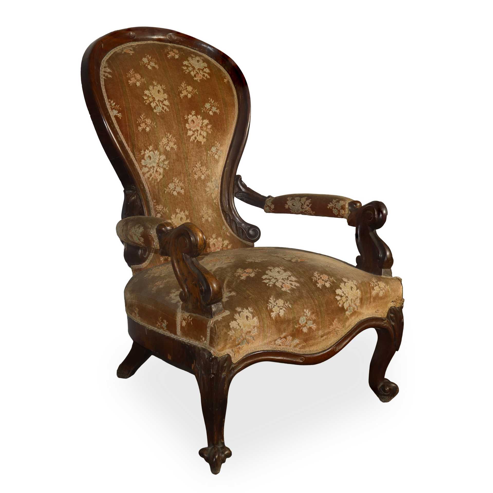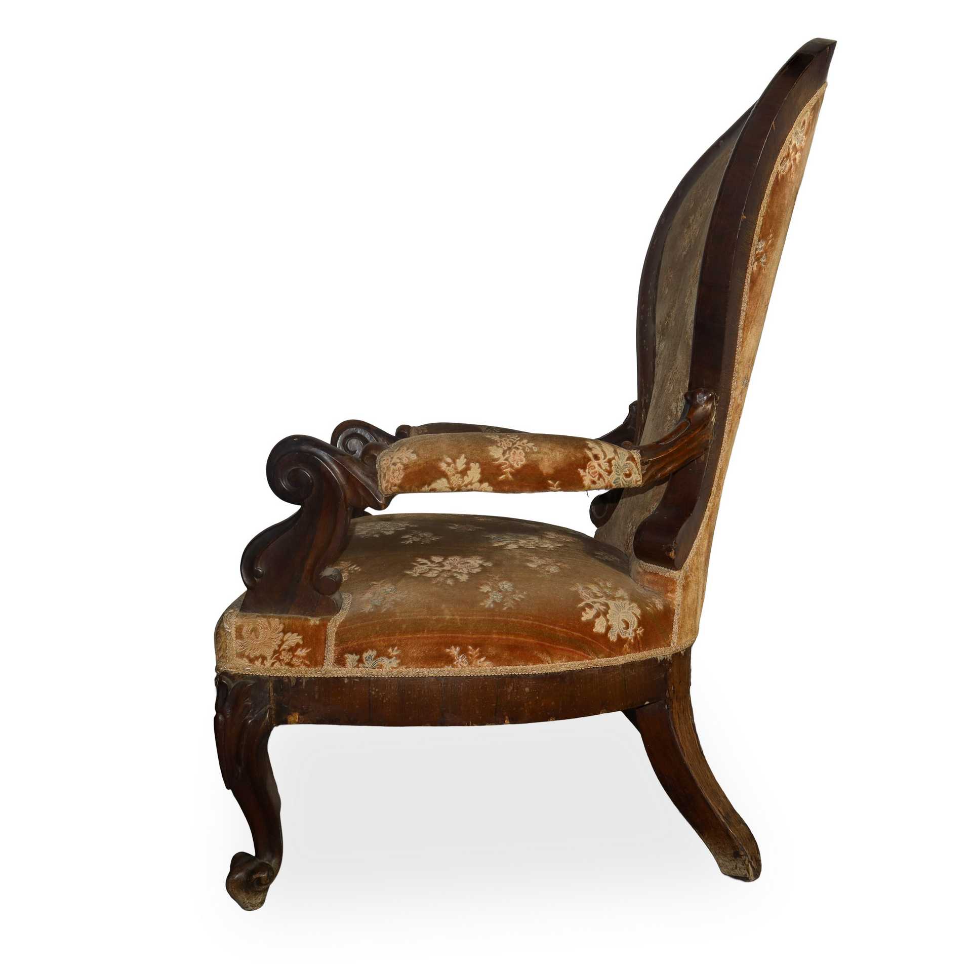 Poltrona in legno di palissandro e velluto h cm 106X69X68