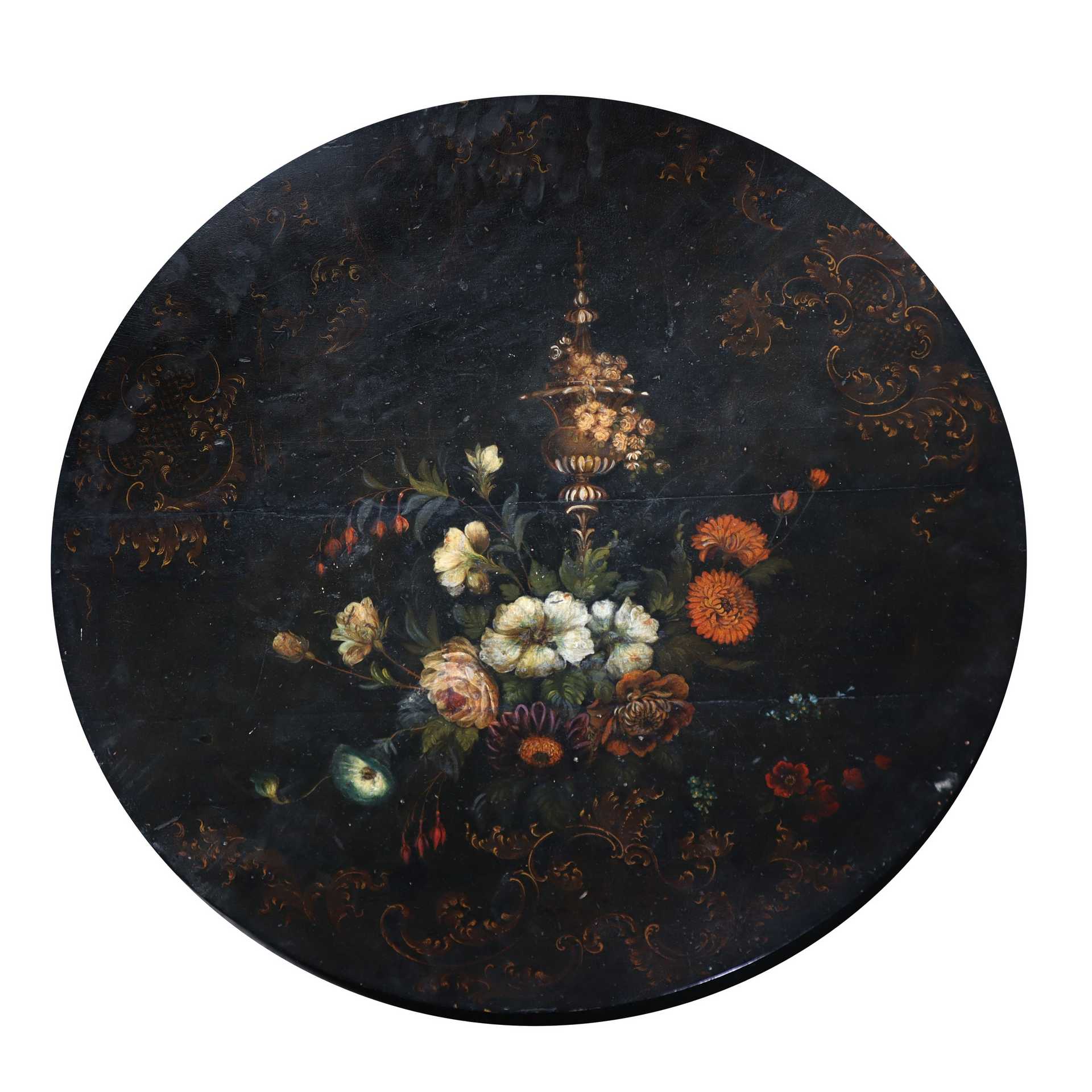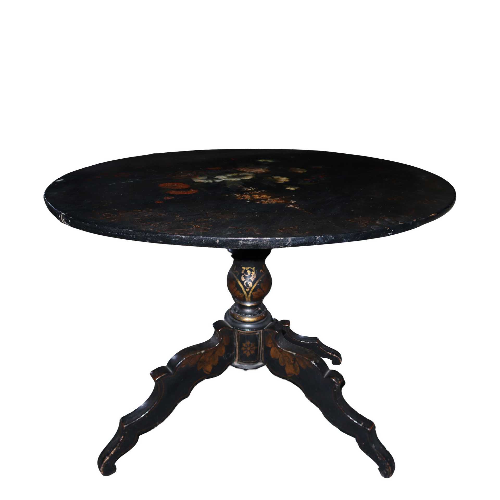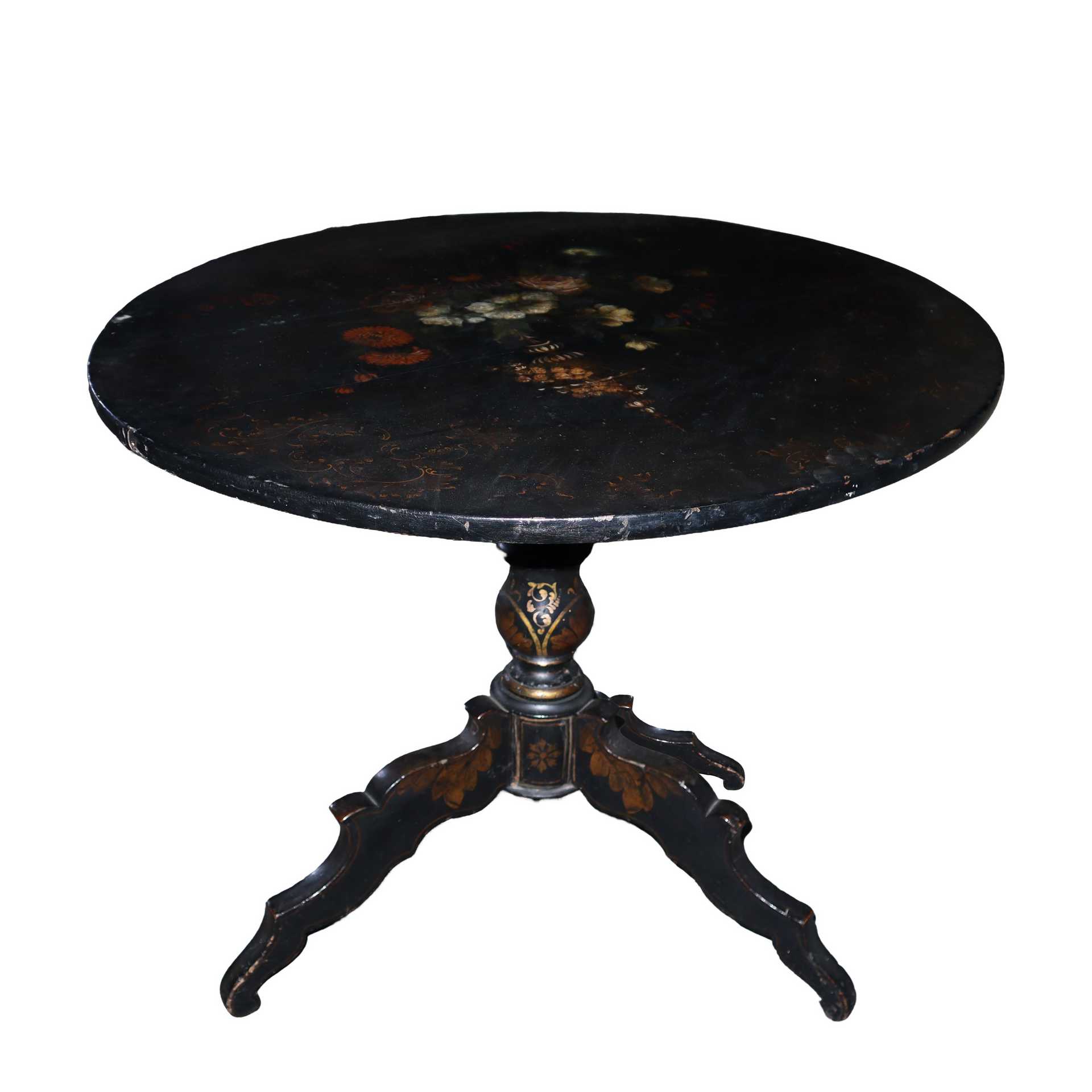 Tavolino laccato nero con fiori dipinti, 19° secolo