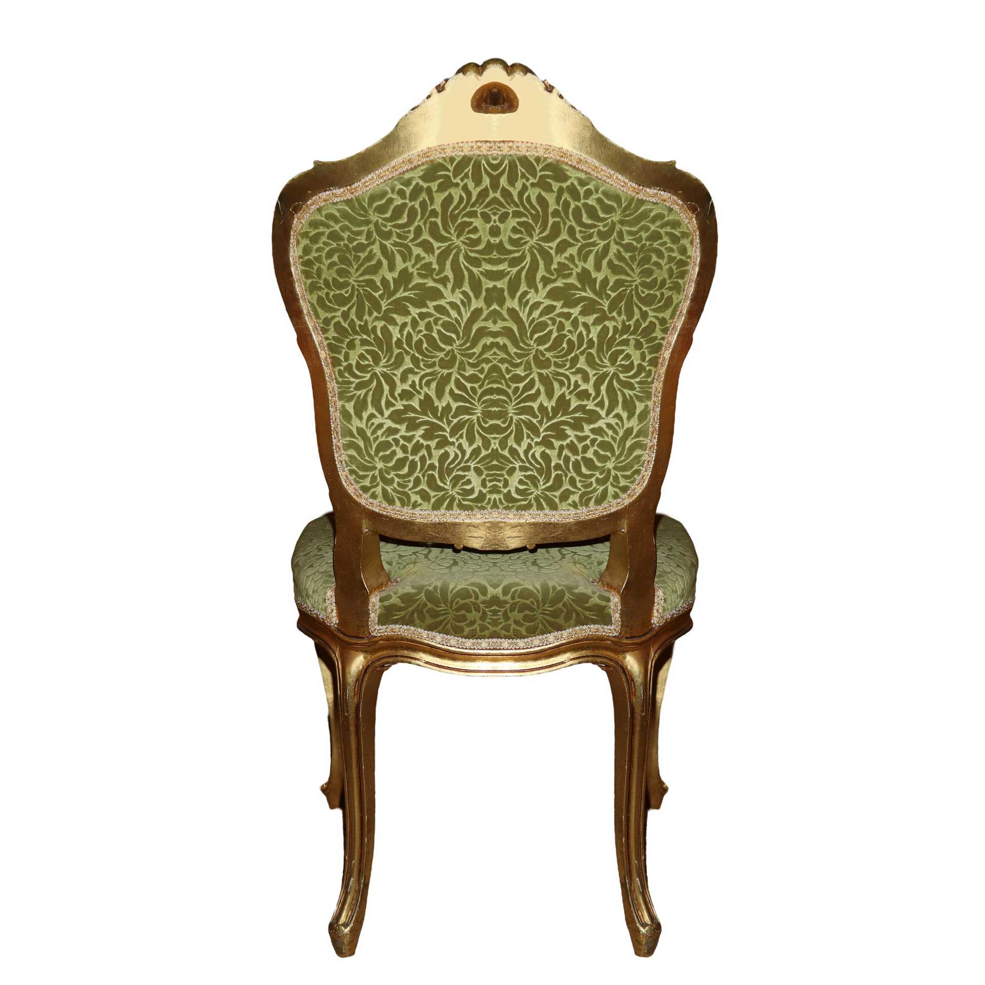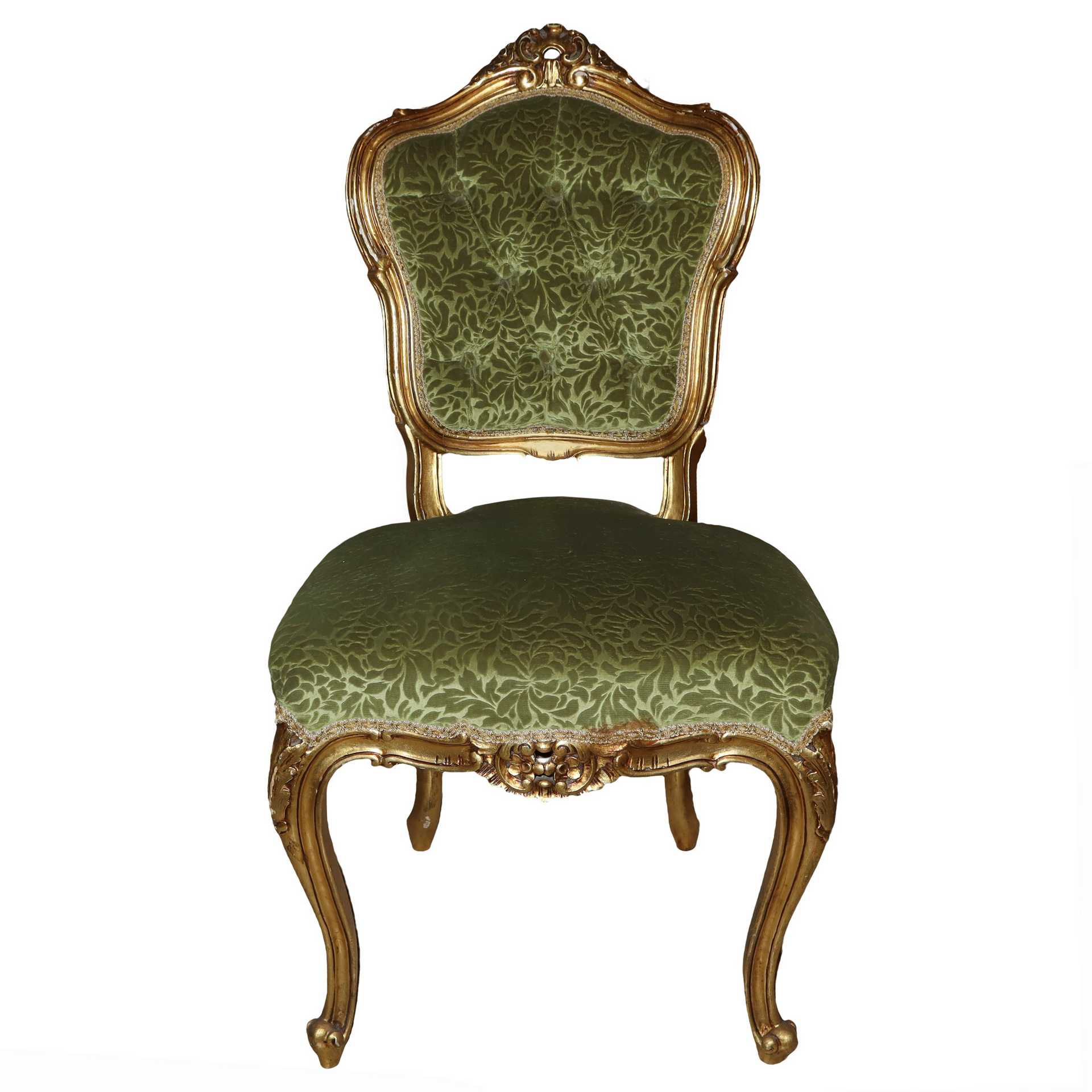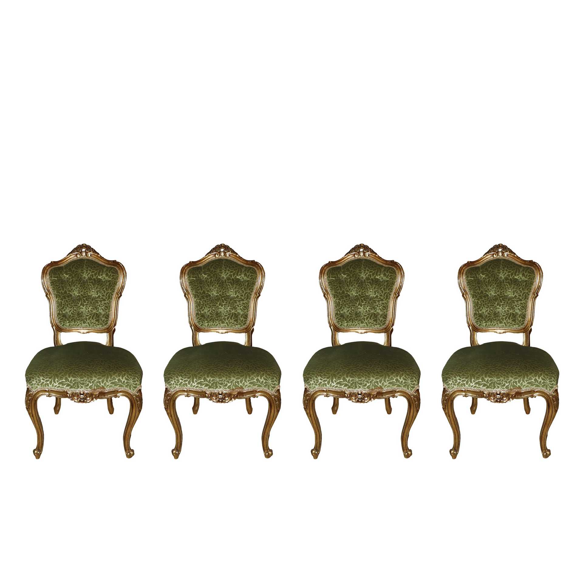 N°4 sedie in legno dorato, 19° secolo H cm 95 x 50 x 45 Tapezzeria in velluto verde, con schiena capitonnèTapezzeria in velluto verde, con schiena capitonnè